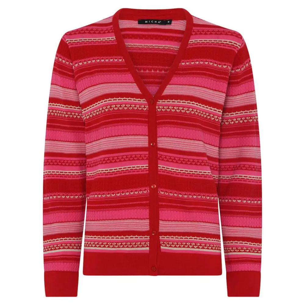 Ajattoman tyylikäs jacquard-raidallinen puuvillaneuletakki. Edessä on nappikiinnitys.Lisää tietojaKeskitakapituus cm…