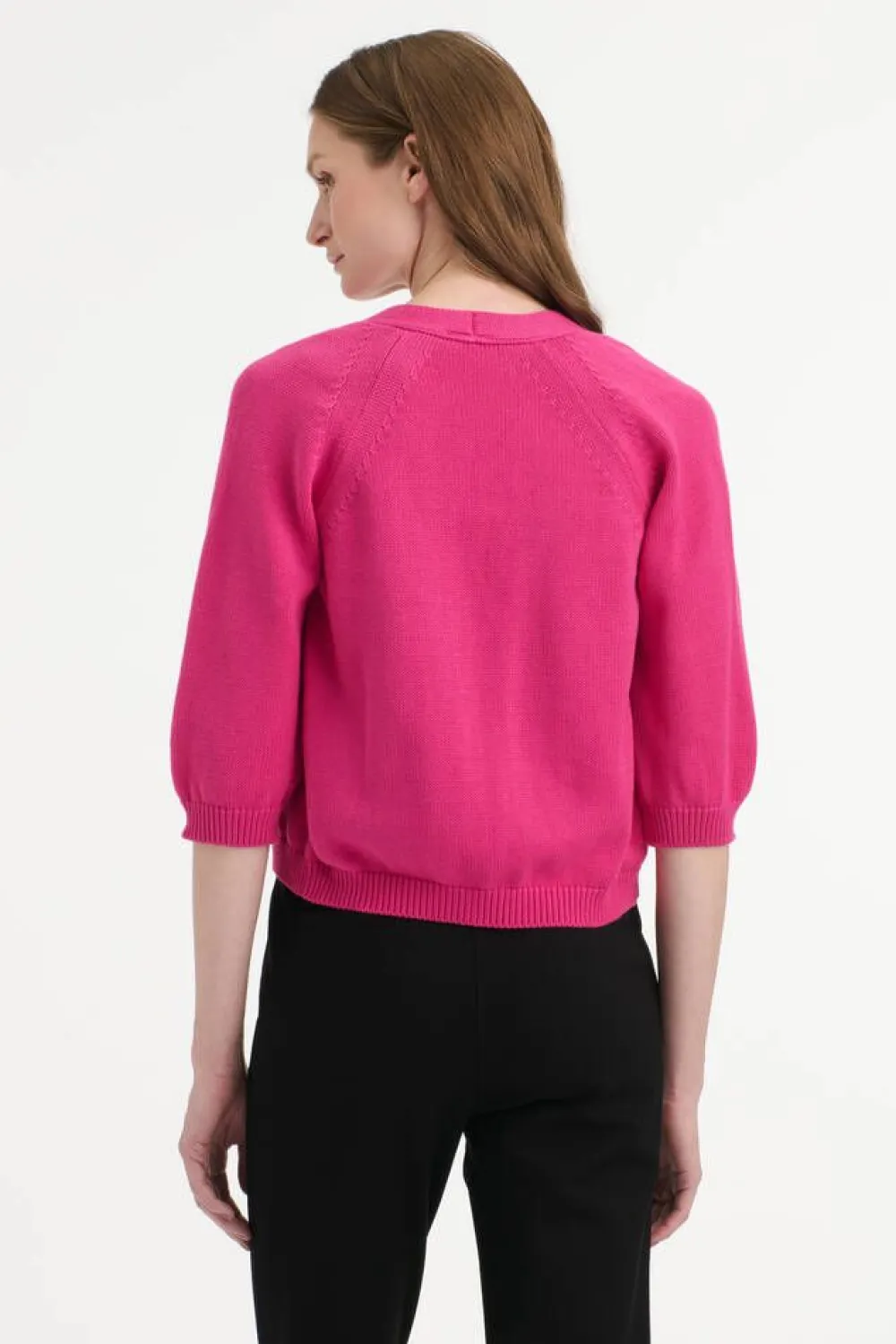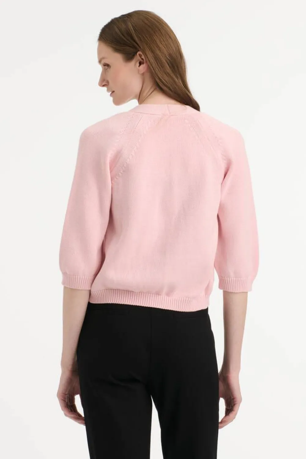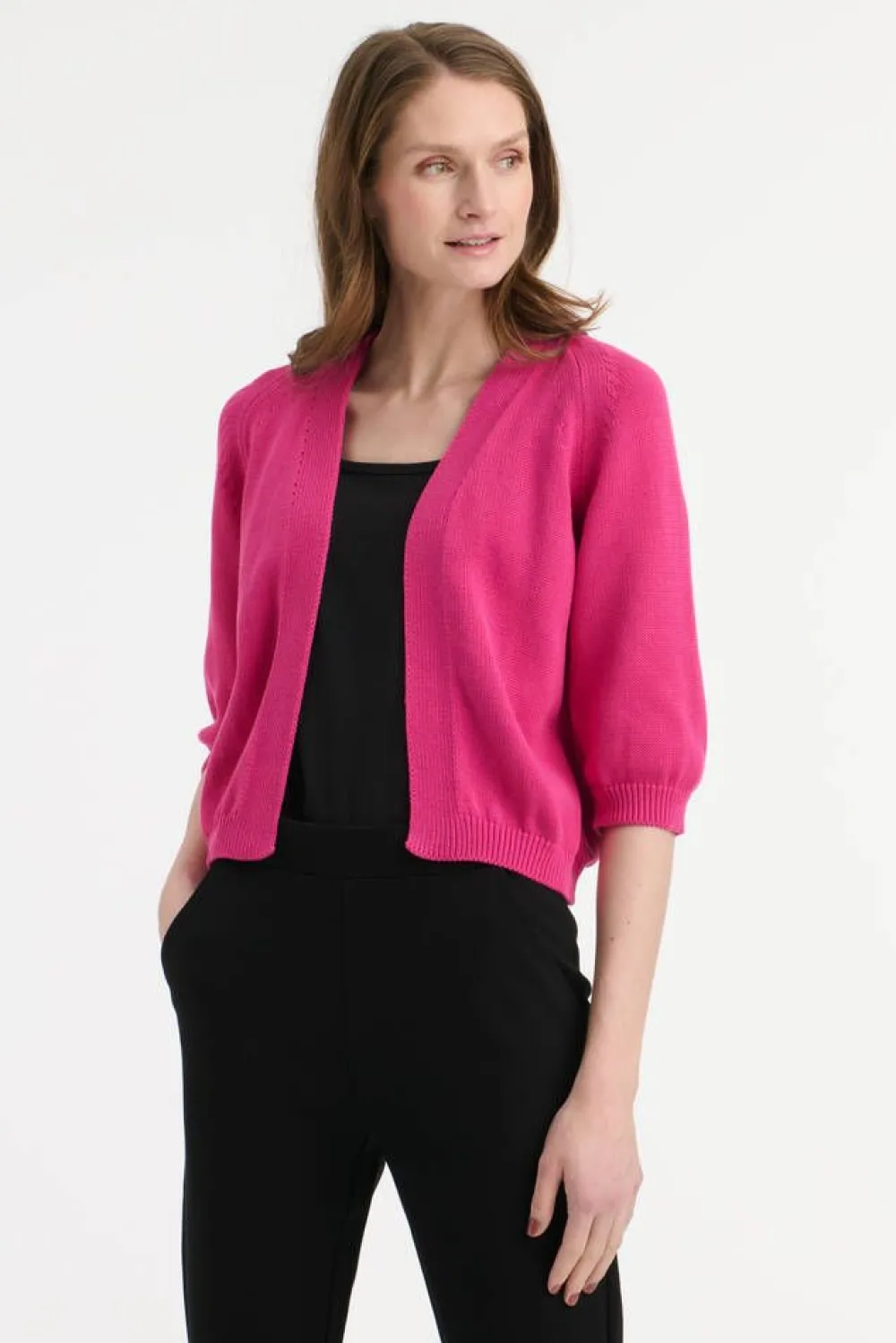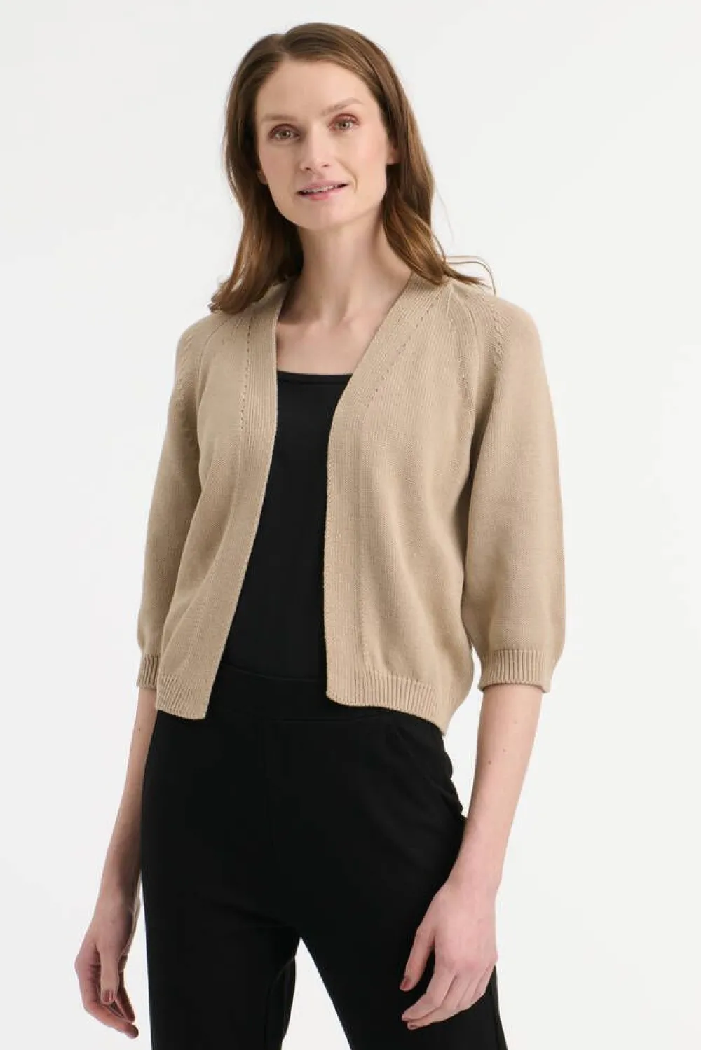Luomupuuvillainen lyhyt neuletakki 3/4-raglanhihoilla.Lisää tietojaMalli käyttää kokoa SMallin mitat: rinnanympäry…