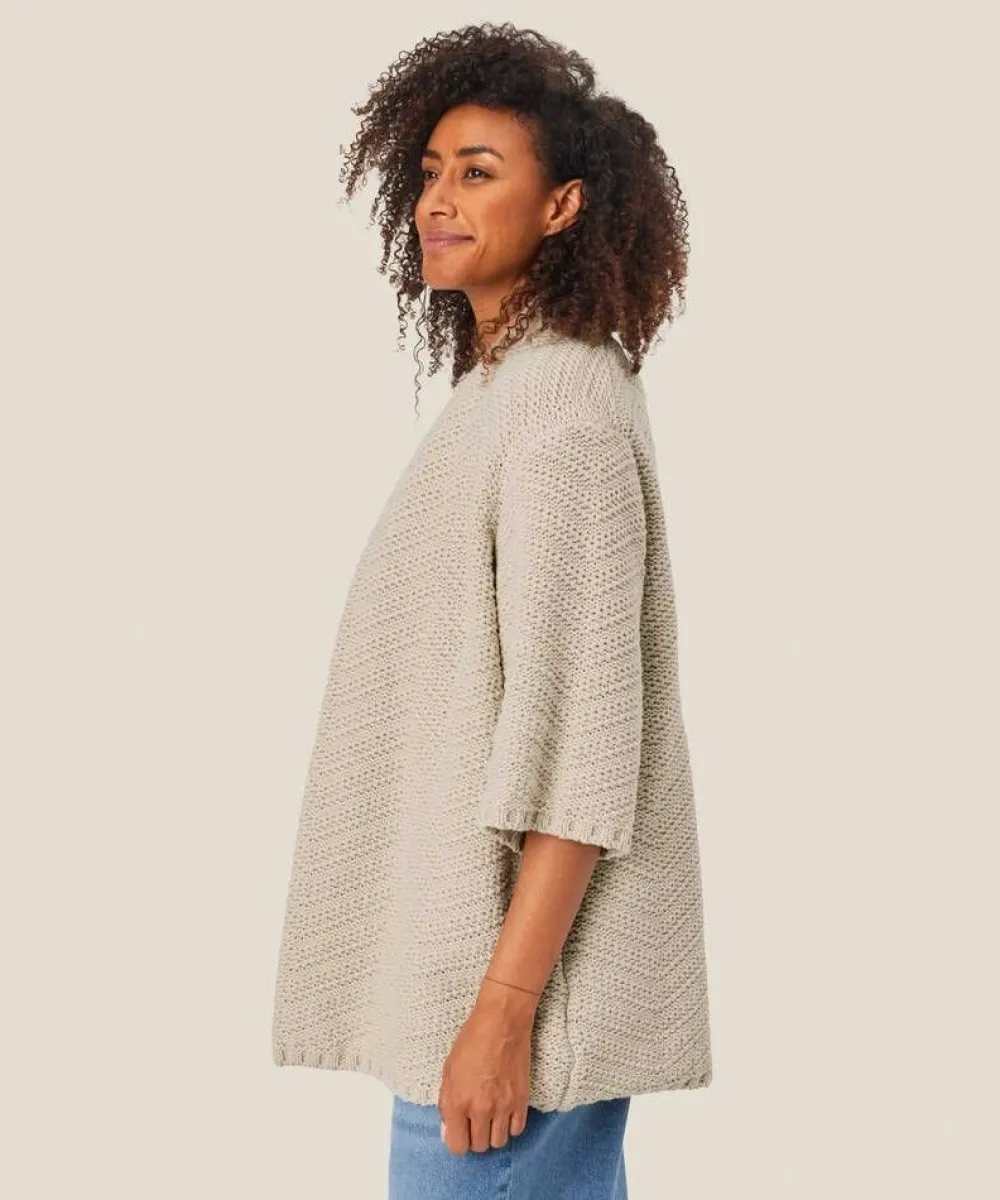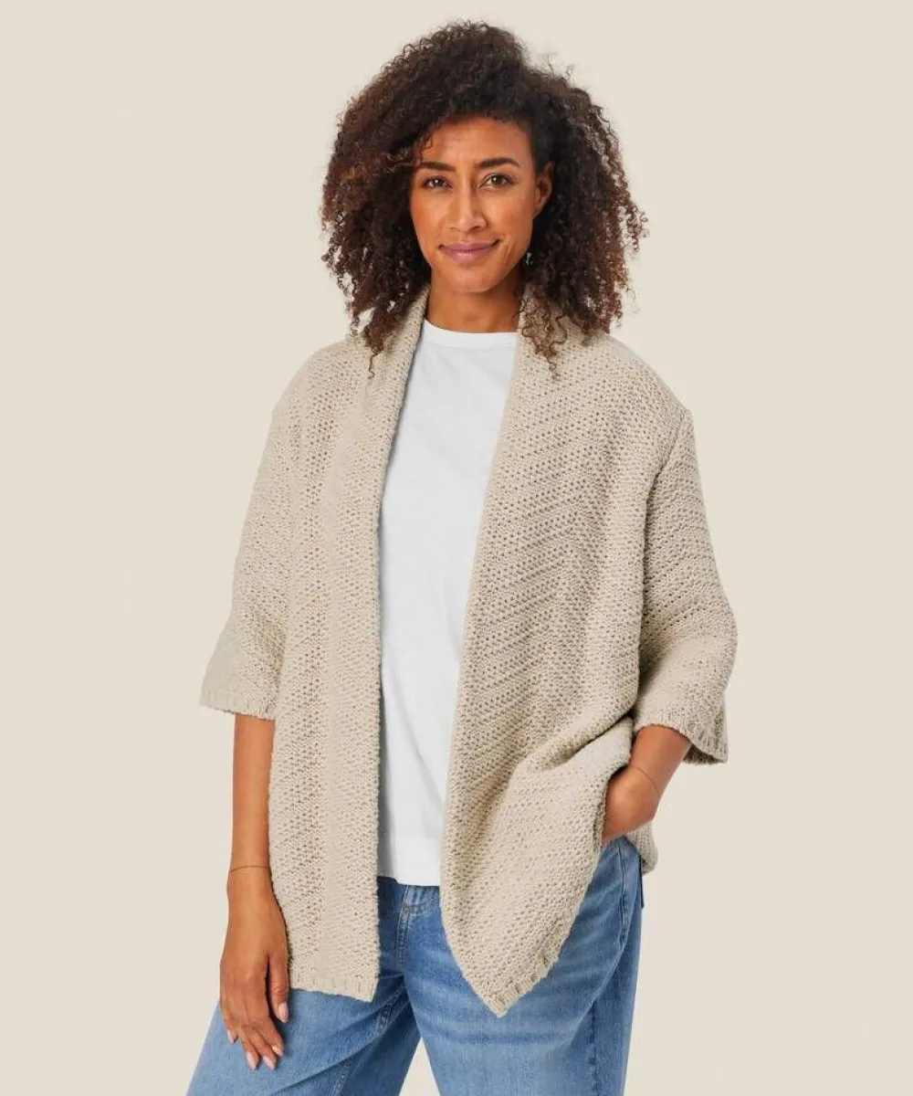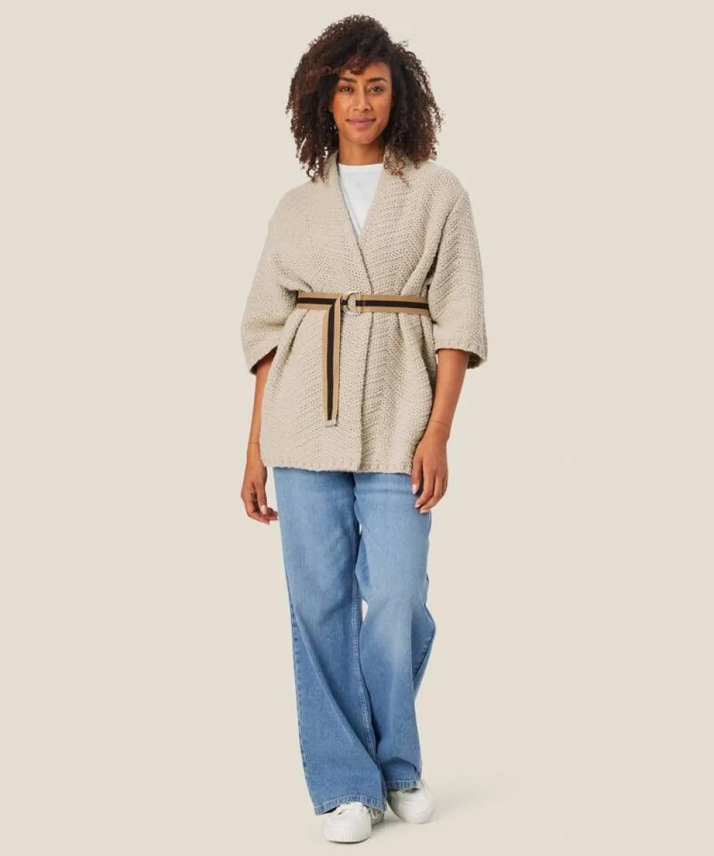 Supertrendikäs väljän mallinen neuletakki tukevasta kuvioneuloksesta. Tyylikkäät suorat linjat ja vajaamittaiset hi…