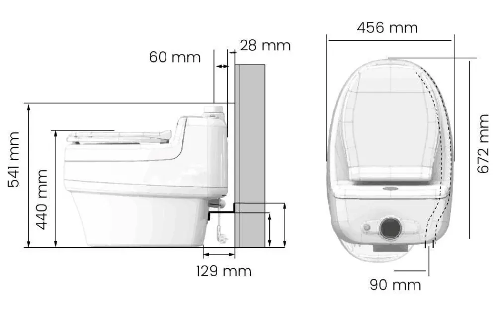 | Sisältää vakiona mm. 1-nopeuksisen tuulettimen, joka on hiljainen (<30 dB(A)) ja tehokas. Säiliössä on erottelu, joka vähentää merkittävästi hajuhaittoja. Tuuletusputki voidaan vetää yksinkertaisesti suoraan ulkoseinän läpi. Laitteen kiinnitys joko lattialle tai seinään. |