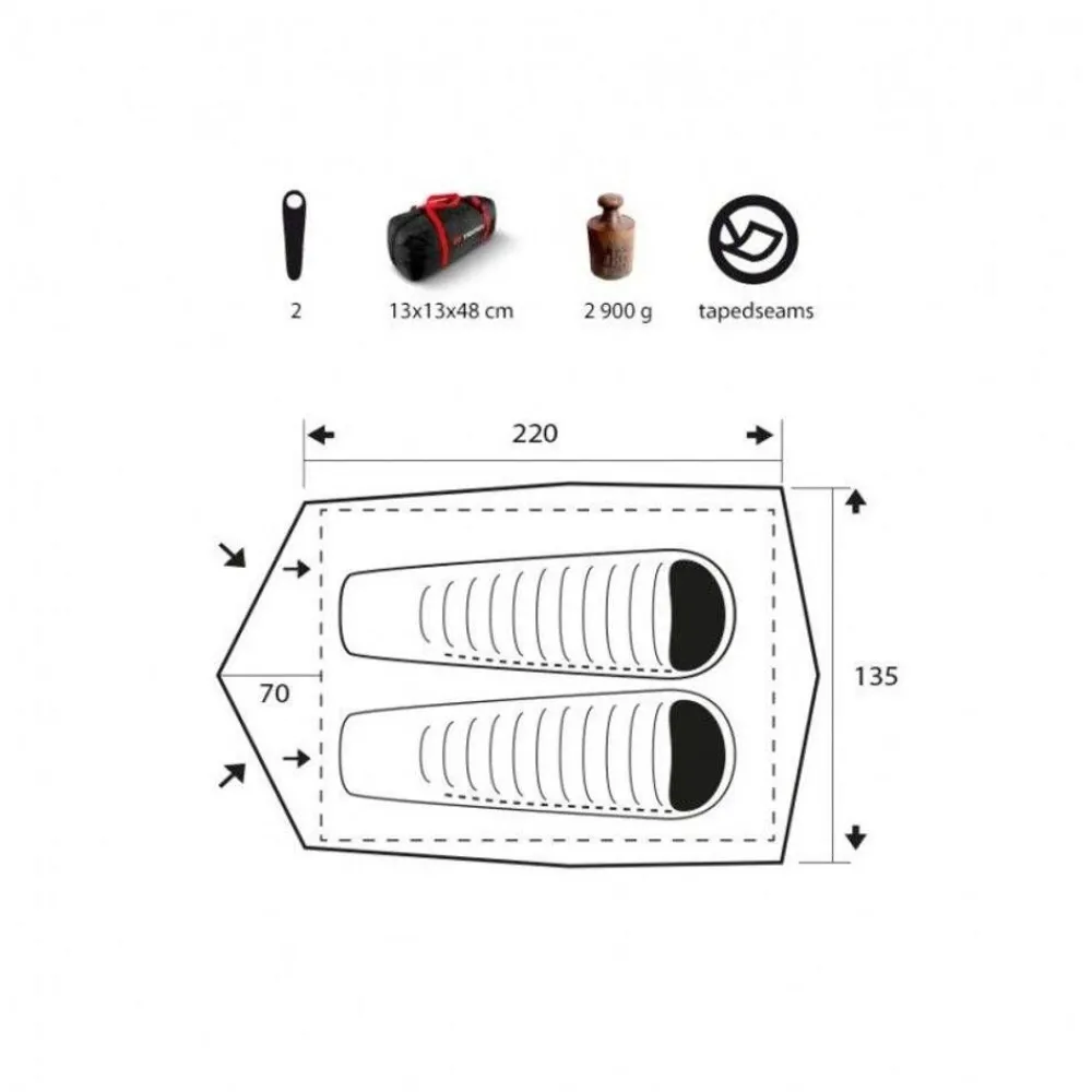 | Materiaali:Ulkoteltta: 100% polyester, sisäteltta 100% polyester, lattia kaaret Durawrap 8,5mm |