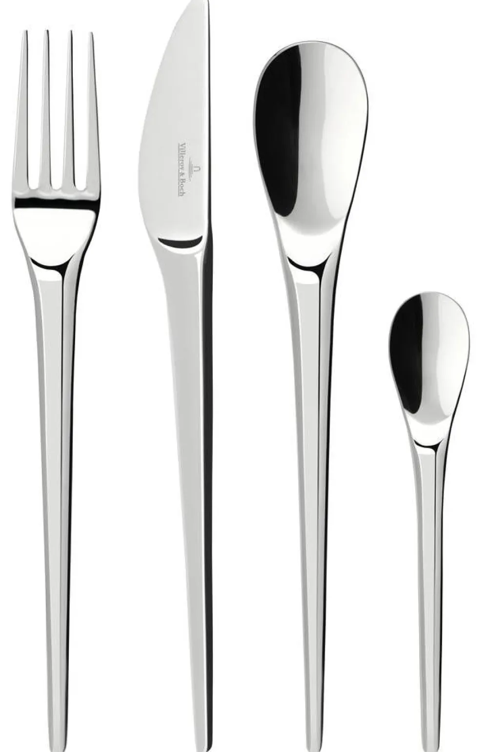 | Yhden myyntipakkauksen sisältö:6 kpl ruokalusikkaa 6 kpl haarukkaa 6 kpl veistä ja 6 kpl pikkulusikkaa |