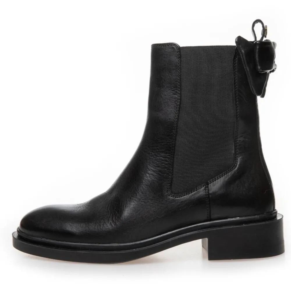 Kokomustat nahkanilkkurit varren venykeosilla. Takana on kaunis rusettikoriste.Lisää tietojaMateriaali:NahkaSisäpohja…
