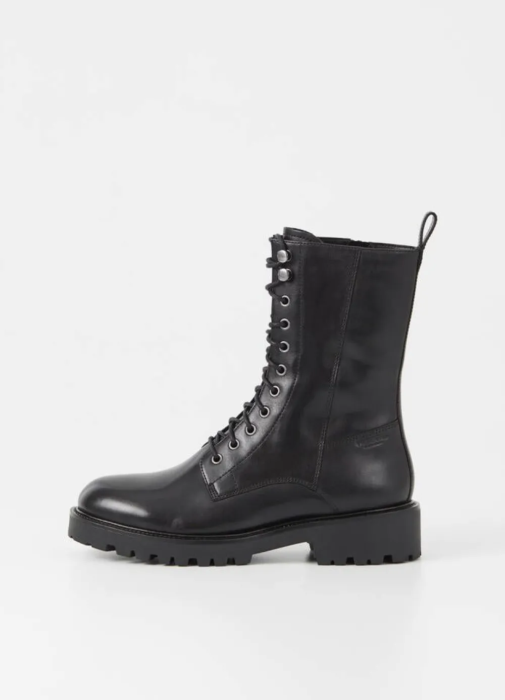 Klassisen tyylikkäät nahkapintaiset nilkkurit nauhoituksella kylmempiin keleihin. Sisäsyrjällä on myös vetoketju. …