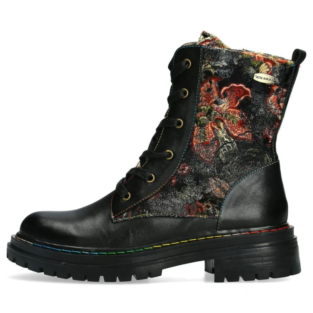 Klassisesti muotoillut maiharimalliset nilkkurit tunnistettavalla viimeistelyllä; pritattu pintanahka ja monivärinen t…