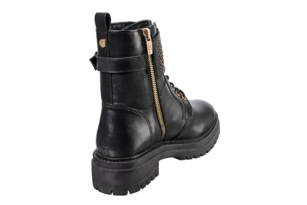 Tyylikkäät nahkapintaiset maiharit niittisomisteisella läpällä.Lisää tietojaKiinnitys:Nauha / vetoketjuMateriaali…