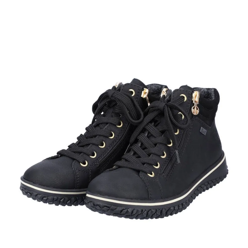 Naisten nilkkurit, joissa on nauha- ja vetoketjukiinnitys. Mukava velourvuori ja RiekerTEX-kalvo takaavat käyttömukavu…