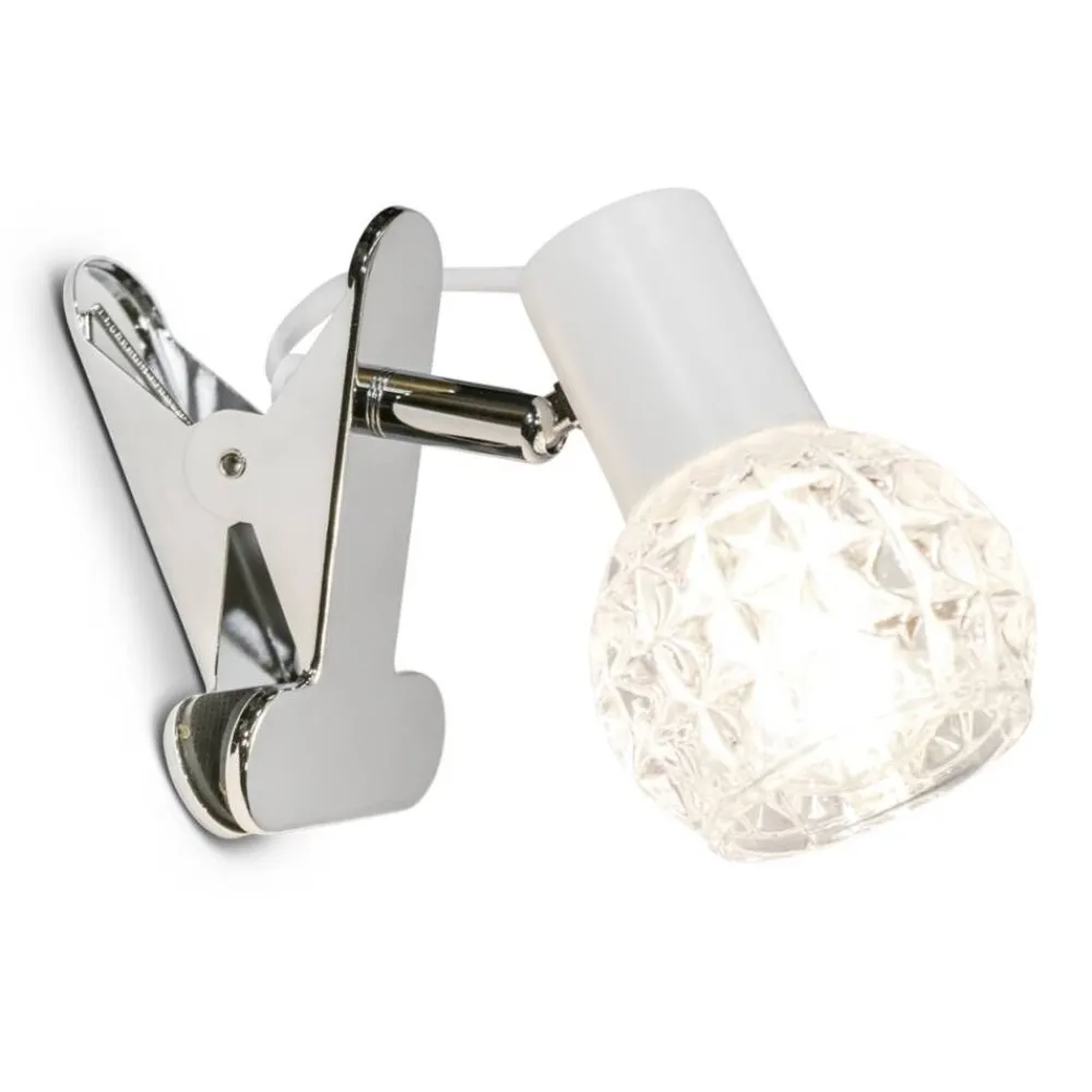 Upea valkoinen nipistinvalaisin lasisella kuvulla. Koska nipistinvalaisinta ei tarvitse kiinnittää, on helppoa löytä…