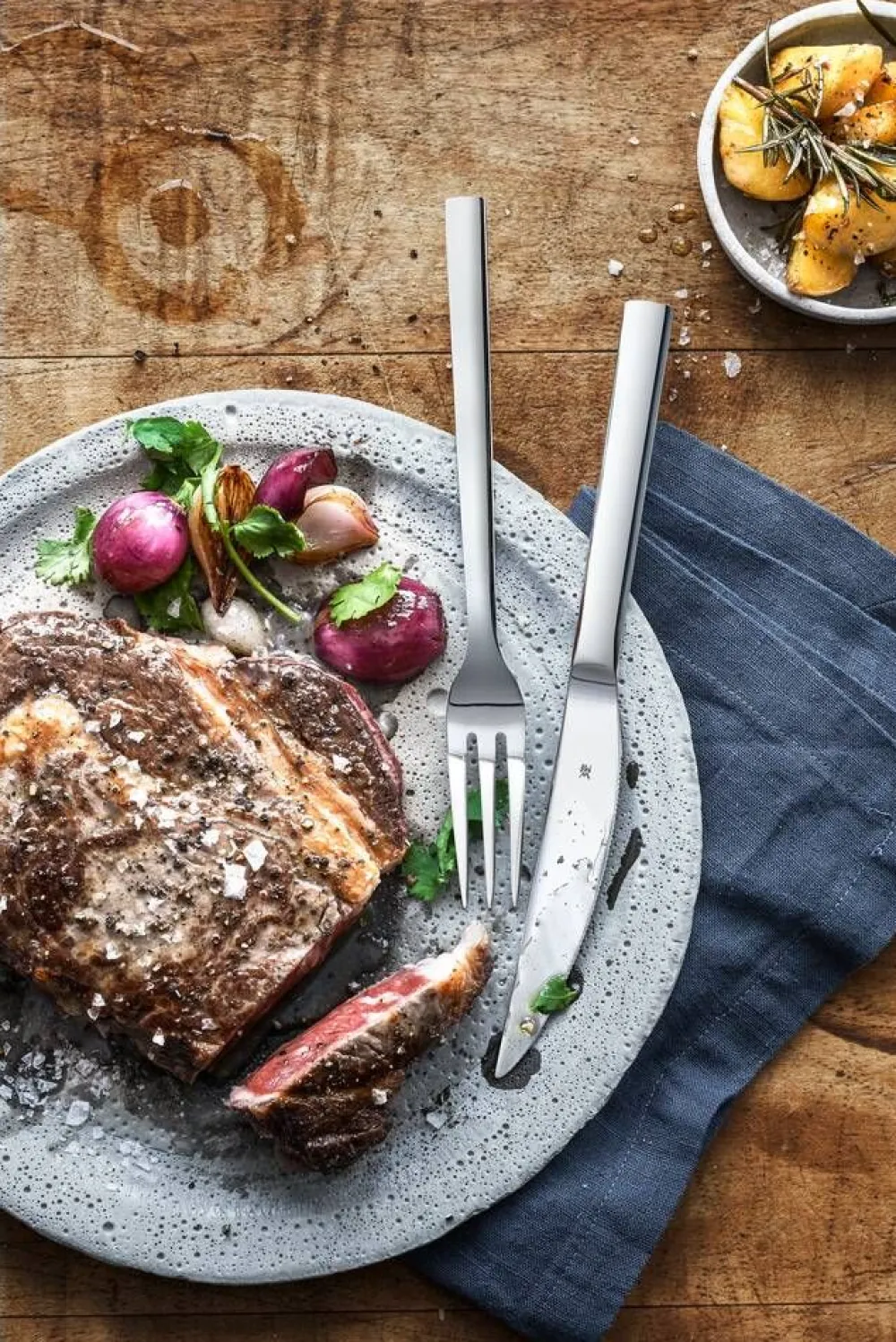 | Kun tuotteen valmistusmateriaalin pitää olla korkealaatuista, kestävää ja kiiltonsa vuodesta toiseen säilyttävää, on luonnollinen valinta WMF:n ruostumaton Cromargan® 18/10 -teräs. Cromargan® on rekisteröity tavaramerkki, joka varmistaa sen, että WMF:n Cromargan®-teräs eroaa muusta ruostumattomasta teräksestä. Sen valmistusprosessit ovat tehokkaat ja korkealaatuiset. Cromargan®-teräksen laatua valvotaan tarkasti ja säännöllisesti, jolloin siitä valmistetut tuotteet täyttävät jatkuvasti niille asetetut vaatimukset. Lisäksi Cromargan®-teräs on erittäin kestävää naarmuuntumista ja kulumista vastaan sekä täysin ruosteenkestävää. Se ei kerää lainkaan makuja ja kestää myös ruoan happoja. Cromargan®-teräs valmistetaan Saksassa. |
