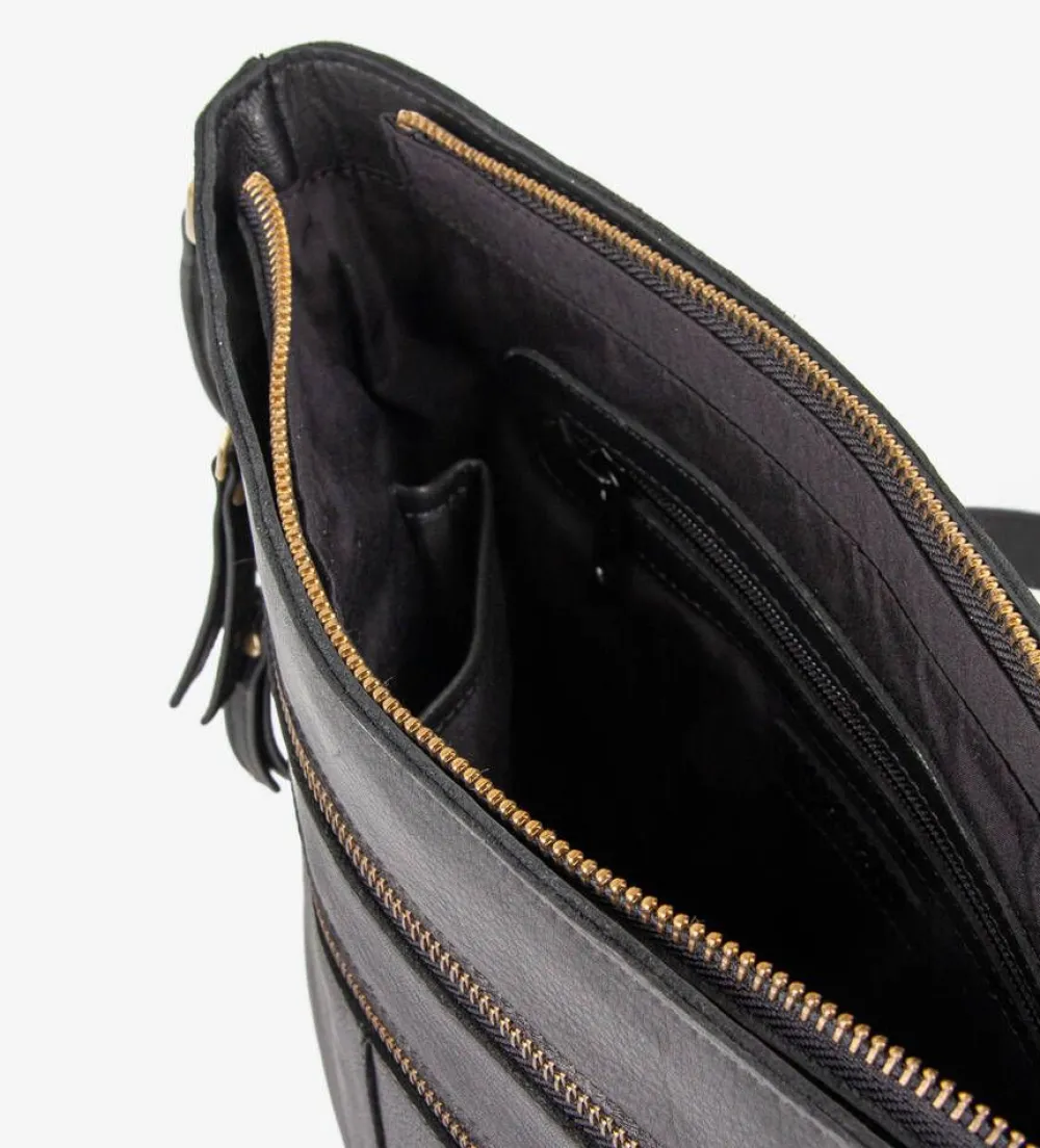 Käytännöllinen olkalaukku säädettävällä olkahihnalla ja vetoketjutaskuilla sekä ulko- että sisäpuolella.Lisä…