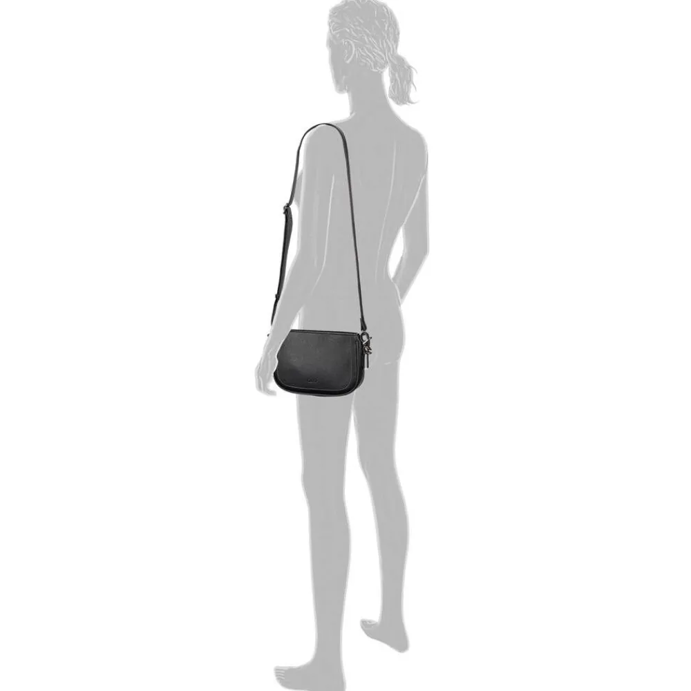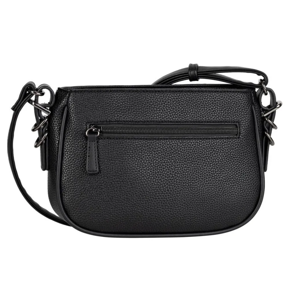 Monikäyttöinen musta olkalaukku vetoketjukiinnityksellä ja säädettävällä olkahihnalla. Pientä lisäsärmää la…