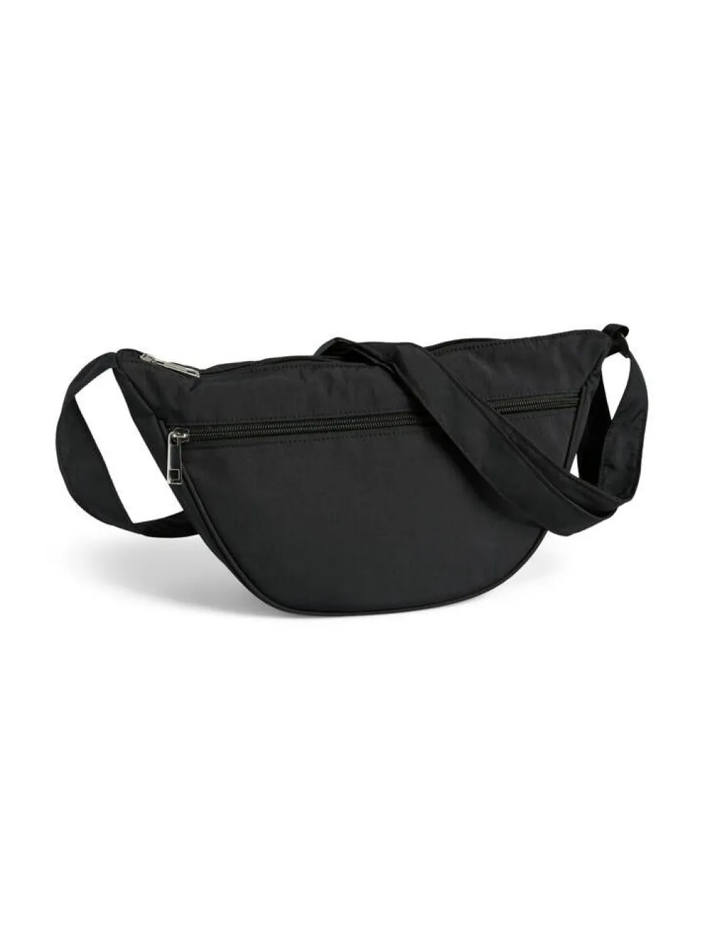 Trendikäs kaarevan muotoinen olkalaukku säädettävällä olkahihnalla. Etupuolella ja laukun sisäpuolella on vetoket…