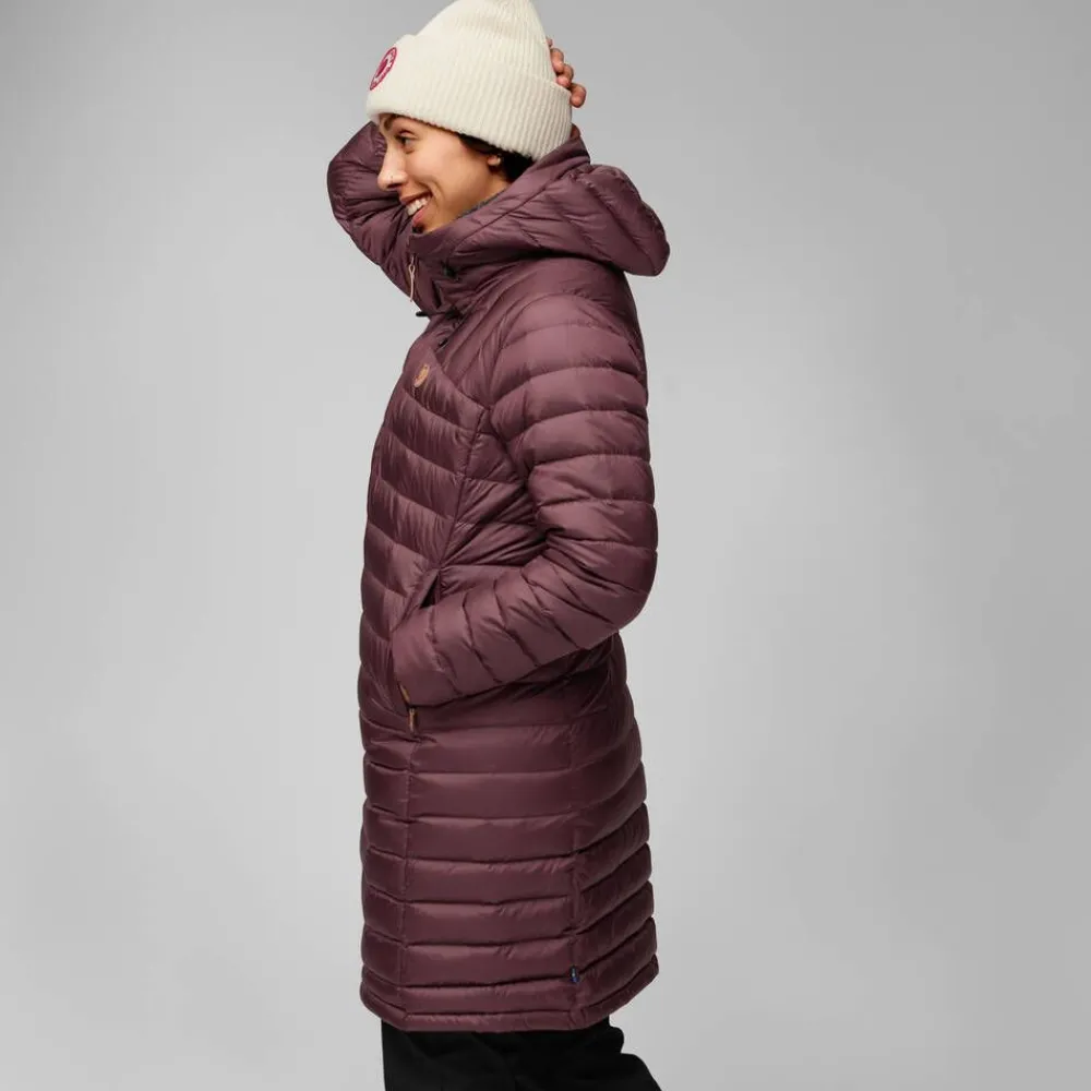 | Pitkä, lämmin ja kevyt parkatakki, joka on täytetty jäljitettävissä olevalla hanhen untuvalla. Pakattavissa mukana tulevaan pussiin. |