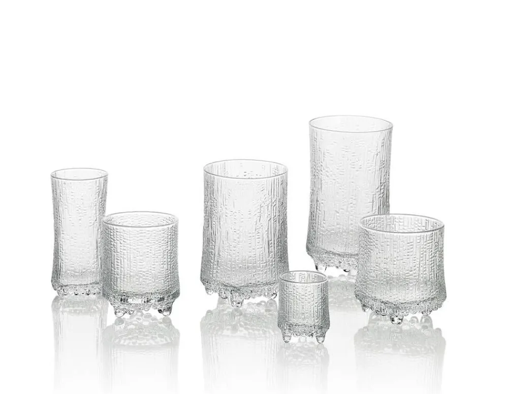 | Ultima Thule – Pohjolan talven ja jään innoittama Ultima Thule on yksi suomalaisen lasimuotoilun ikoneista. Sen orgaaninen pintakuvio tunnistetaan ympäri maailmaa muotoilijamestari Tapio Wirkkalan erehtymättömäksi kädenjäljeksi. Lasi saa elävän pintansa tekniikalla, jossa sula lasimassa hakee muotonsa kaiverretuissa muoteissa. Luodessaan klassisen Ultima Thule -sarjan Wirkkala uudisti lasinpuhalluksen perinnettä. Wirkkala käytti Iittalan lasitehtaan lasinpuhaltajien kanssa lähes tuhat työtuntia uuden tekniikan kehittämiseen. Näin saatiin aikaan lasia, jonka pintarakenne jäljittelee muotoilijaa inspiroinutta jäätä ja Lapin lumihankia. Ultima Thule -lasistolle luonteenomaista on pyöristetty pohja, jota kannattelee kolme sulavilta jääpuikoilta näyttävää jalkaa. Ultima Thule tuo sisustukseen sävyjä arktisesta luonnosta. |