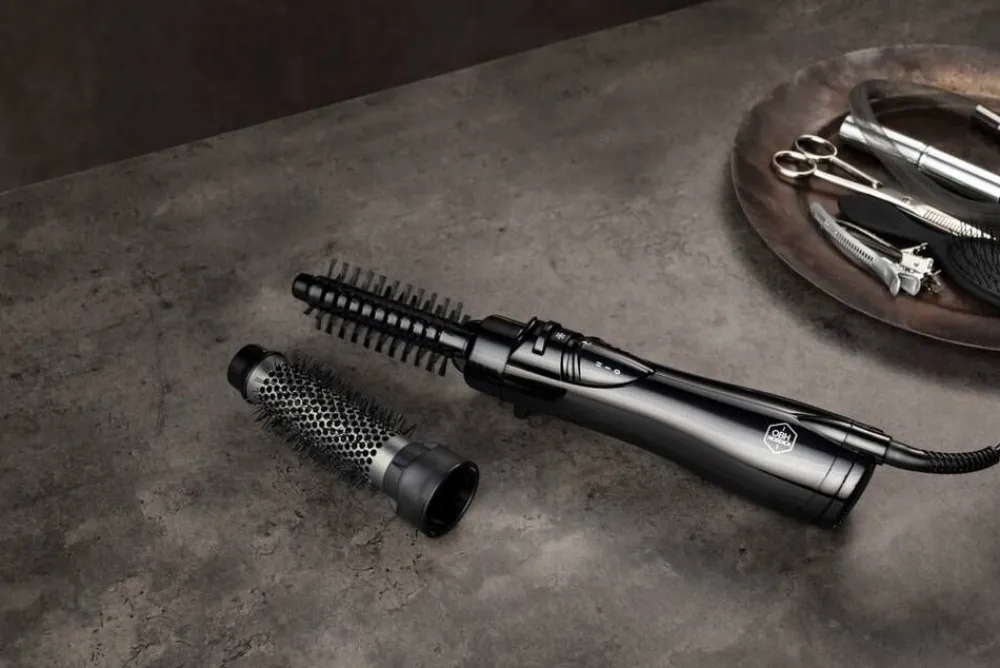 | Kaksi vaihdettavaa harjapäätä saavat aikaan täydelliset kiharat tai tekevät hiuksista tuuheat |