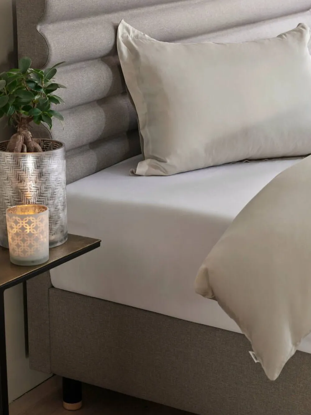 | Muotoonommellun lakanan kulmissa näppärät kuminauhat |