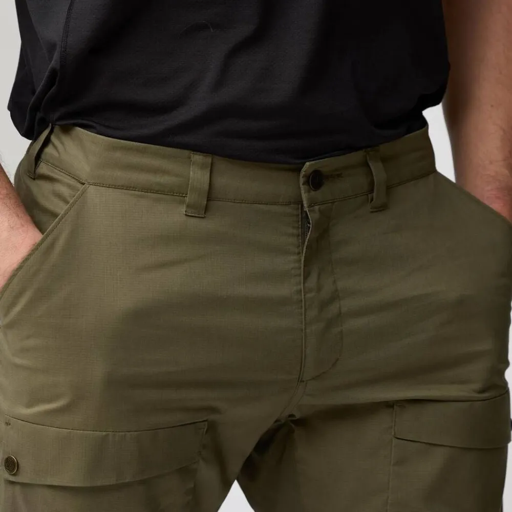 | Kaksi avointa sivutaskua ja kaksi nepparillista reisitaskua, yksi vetoketjullinen tasku. |