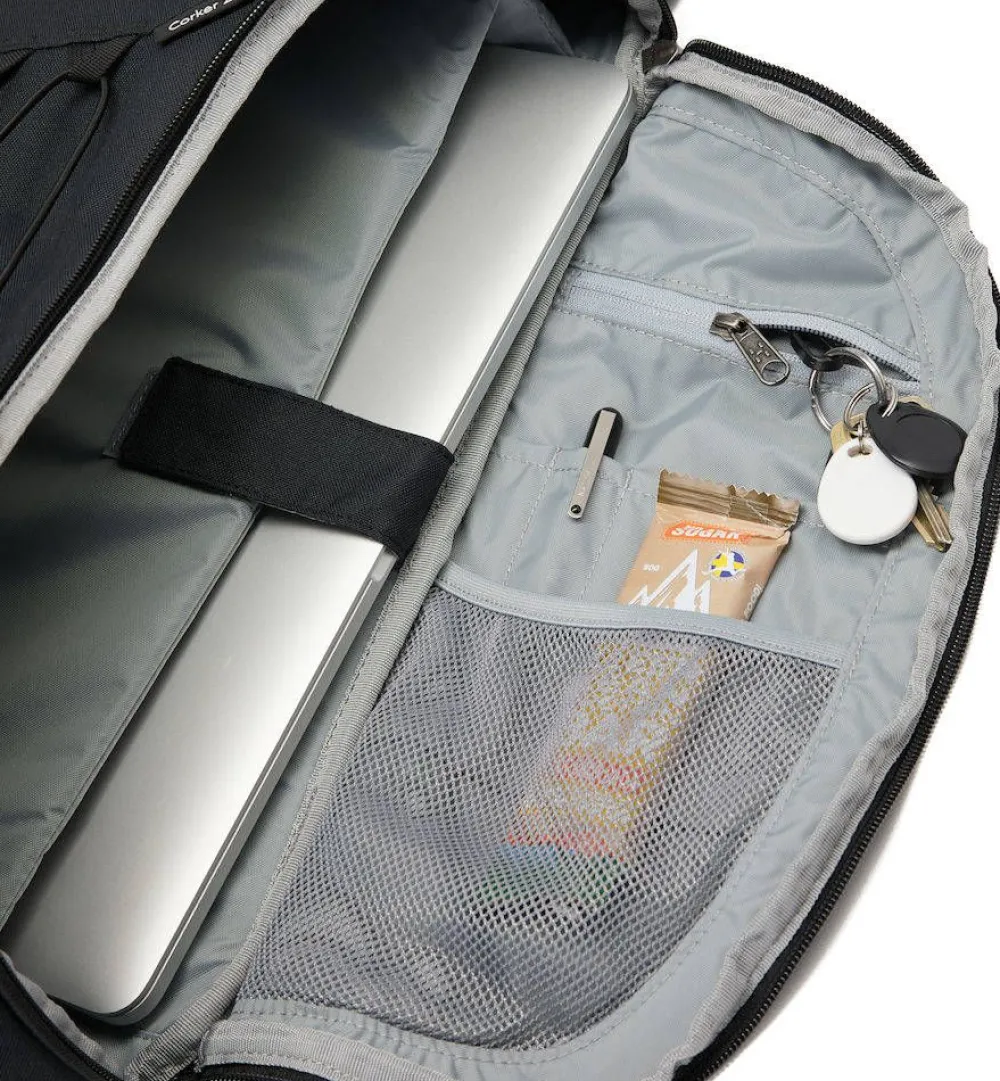 | Pehmustettu tasku 15,6” kannettaville, pienempi vetoketjullinen tasku laukkutilassa, päällä jemmatasku, joustava sivutasku vesipullolle tai varusteille, sisäinen järjestelijä pienille tavaroille |