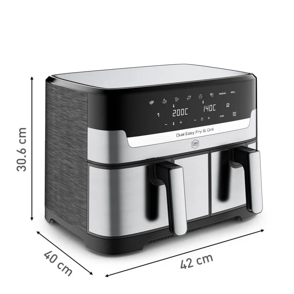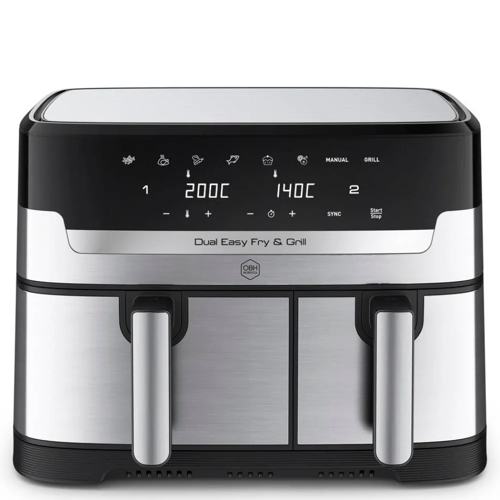 | OBH Nordican air fryer on yksinkertainen tapa pienentää kodin sähkönkulutusta. Käytettäessä Dual Easy Fry & Grill -air fryeriä energiaa kuluu jopa 65 % vähemmän ja kypsennysaika on jopa 40 % lyhyempi verrattuna perinteisiin uuneihin. Luvut perustuvat vuonna 2023 tehtyyn testiin pakasteranskalaisilla. Dual Easy Fry & Grill on korjattavissa 15 vuotta, mikä tarkoittaa, että voimme lähettää varaosia 6 200 korjaamolta ympäri maailmaa kohtuulliseen hintaan. Näin haluamme varmistaa, että tuotteen käyttöä voidaan jatkaa vuosikausien ajan. |