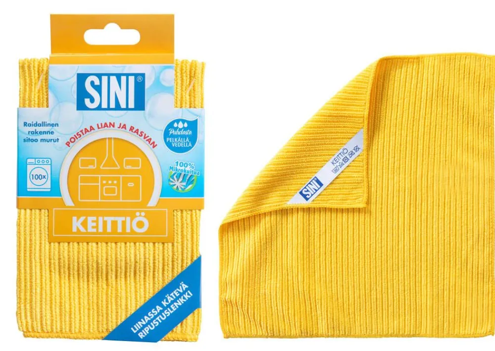 | Hoito-ohjeet:Huuhtele mikrokuituliina aina käytön jälkeen ja kuivaa ilmavasti. Konepesu pesupussissa 60 asteessa. Kestää kymmeniä pesukertoja. Ei huuhtelu- tai valkaisuaineita. |