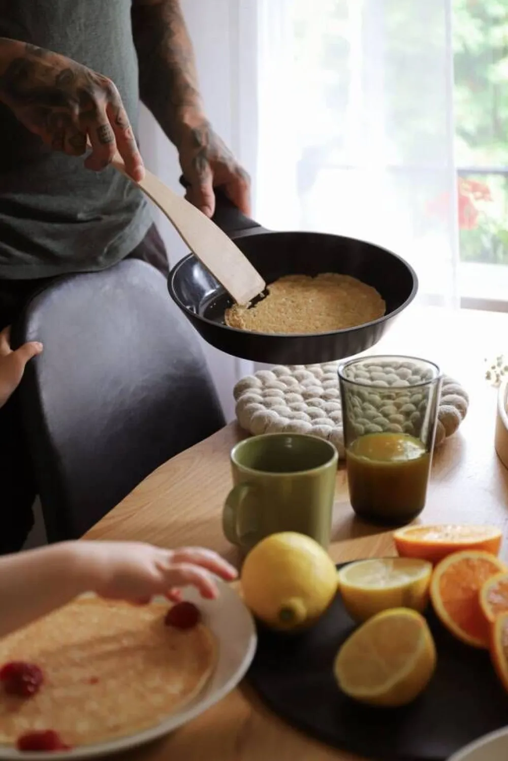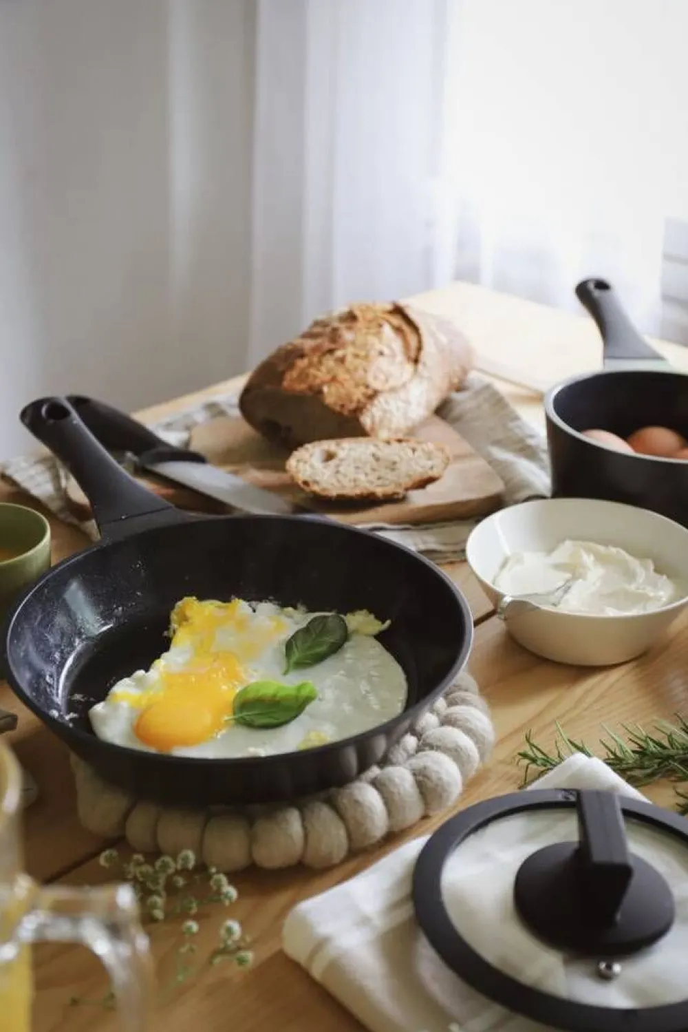 | Hoito-ohjeet:Pese pannu käsin tiskiaineella. Ennen käyttöönottoa keitä vettä paistoastiassa 2-3 kertaa poistaaksesi tuotannosta jääneet epäpuhtaudet. Öljyä paistoastia ruokaöljyllä ennen ensimmäistä käyttökertaa ja toista tämä aina silloin tällöin, tämä parantaa tarttumattomuuden kestoa. Käytä aina paistaessa ruokaöljyä tai voita. Älä kuumenna yli 250 asteeseen, jos ruokaöljy alkaa savuta, on lämpötila yli 250 astetta. Käytä puisia tai muovisia työvälineitä. |