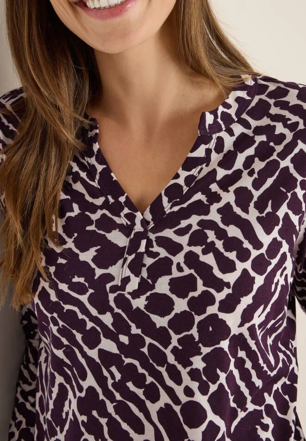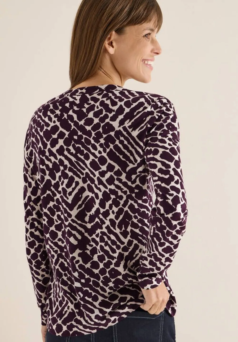 Pirteä kuosillinen trikoopaita v-pääntiellä ja pitkillä hihoilla.Lisää tietojaKeskitakapituus cm:64cmMateriaali:5…