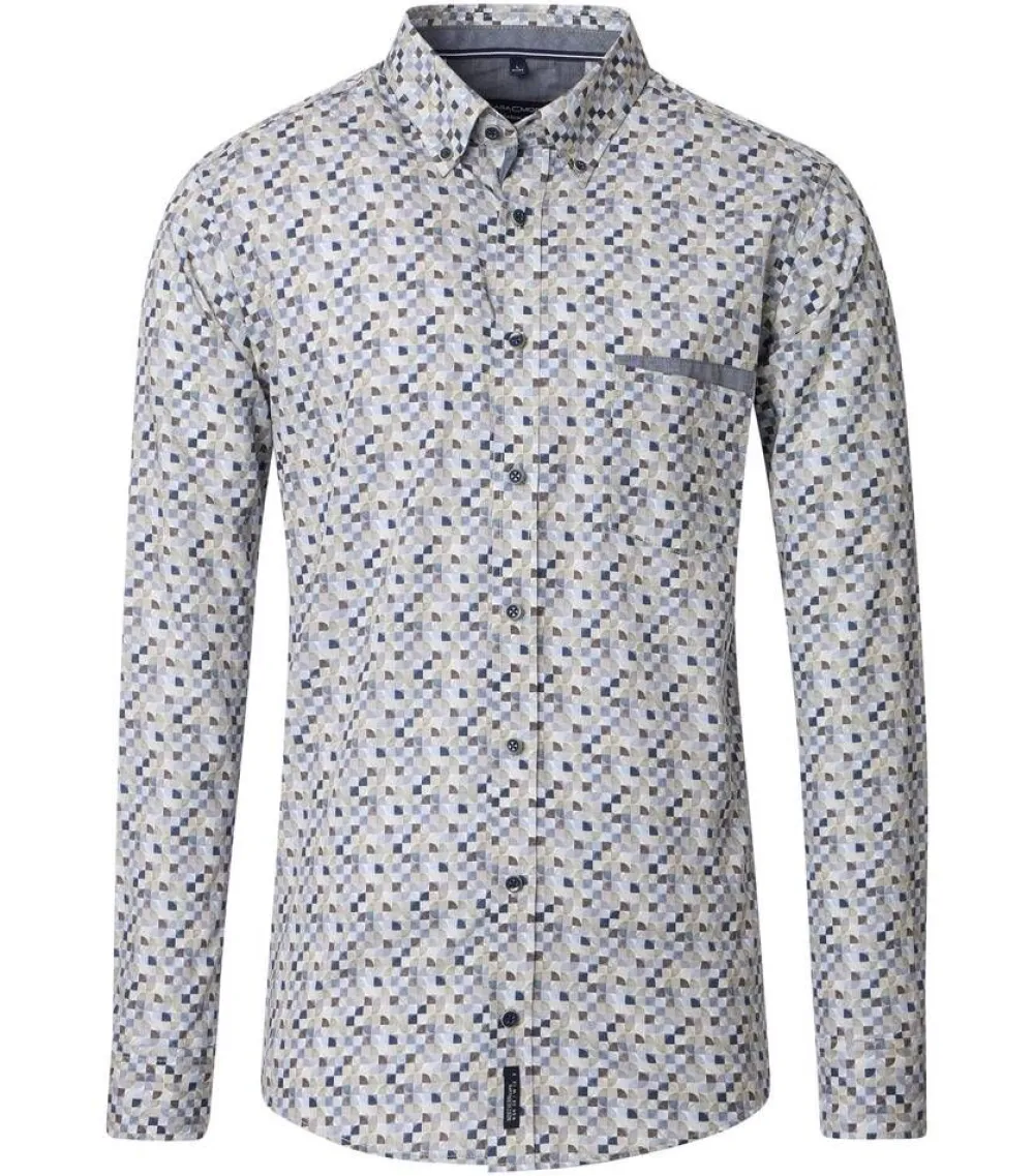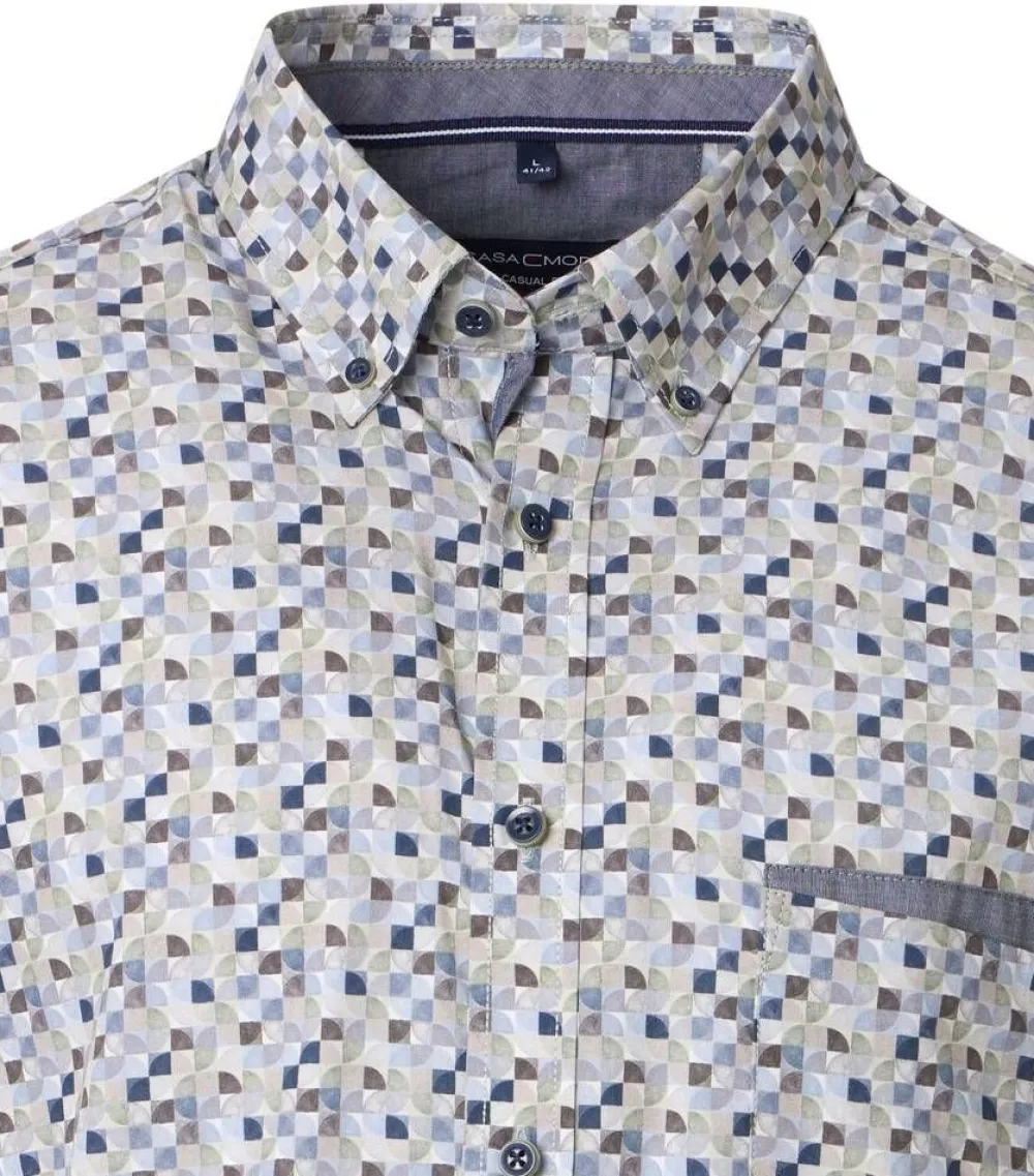 Tyylikäs nappikauluspaita persoonallisella printtikuosilla ja rintataskulla. Kontrastikankaat hihansuissa, nappilistass…