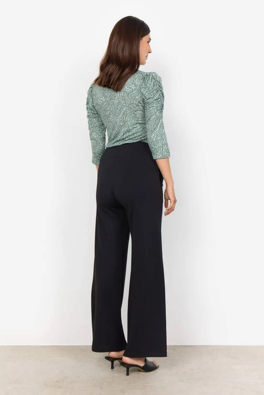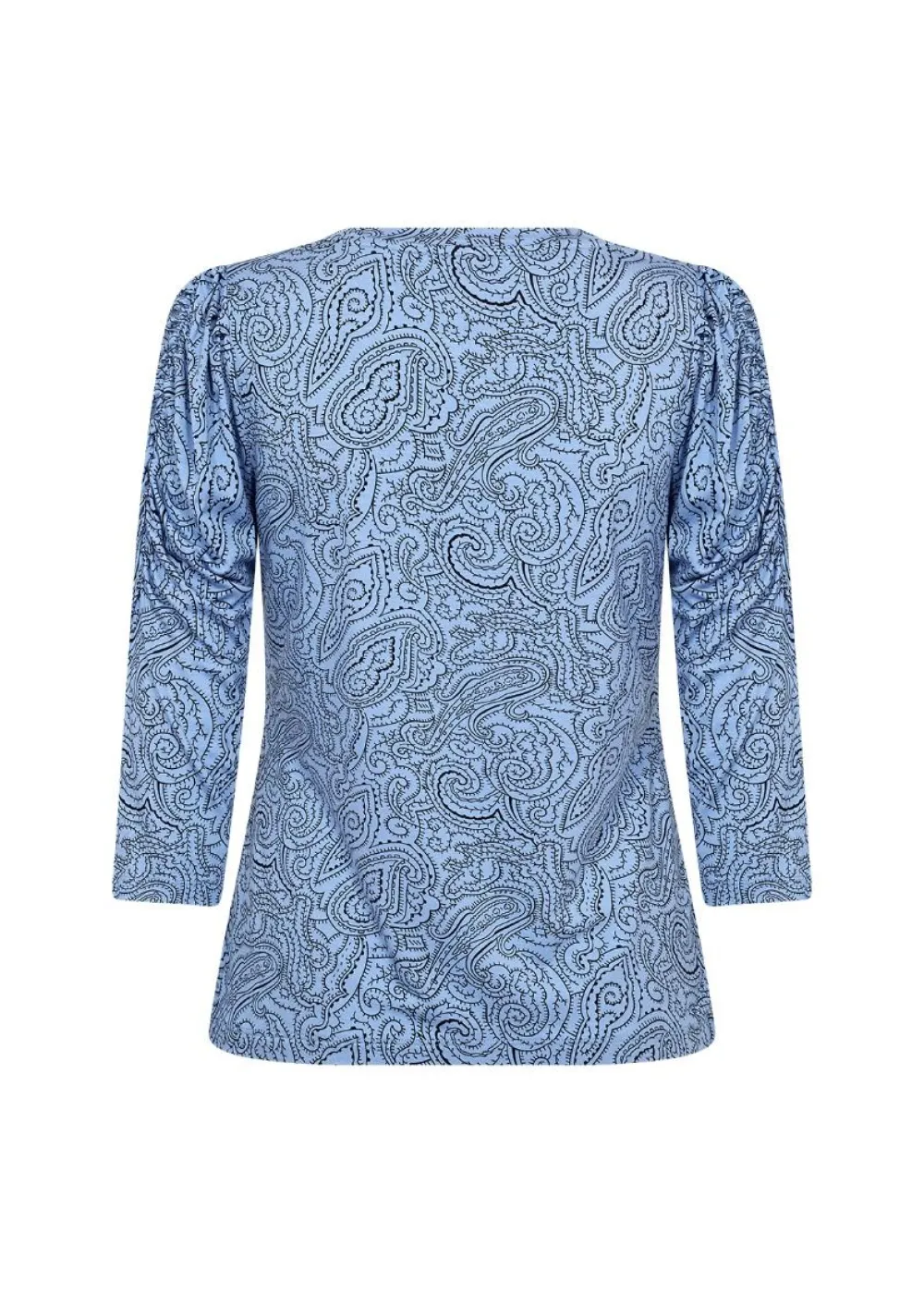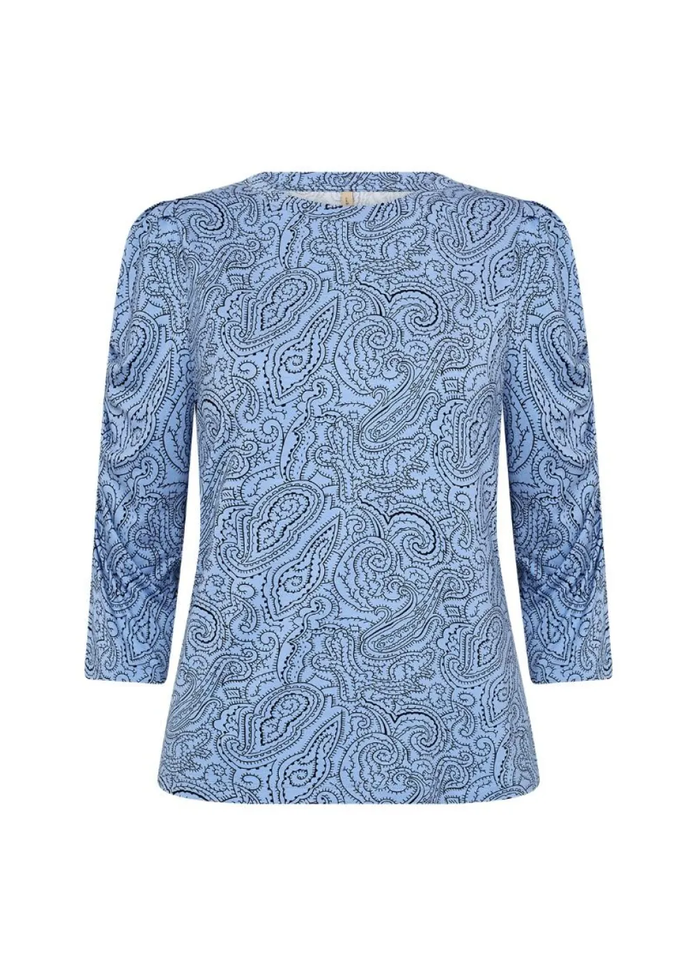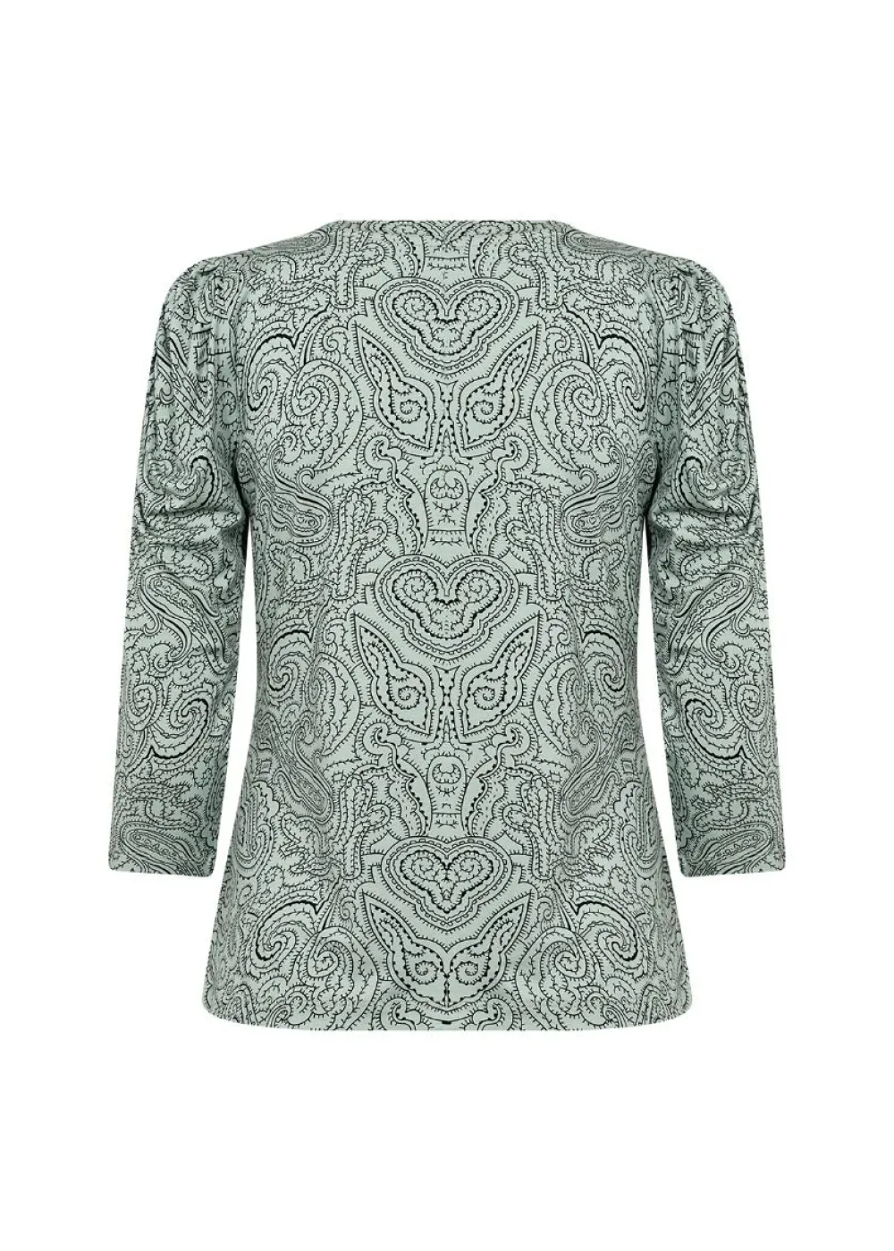 Näyttävä paisley-printillinen pusero klassisella pyöreällä pääntiellä. Mallissa on 3/4 hihat, joissa on koriste…