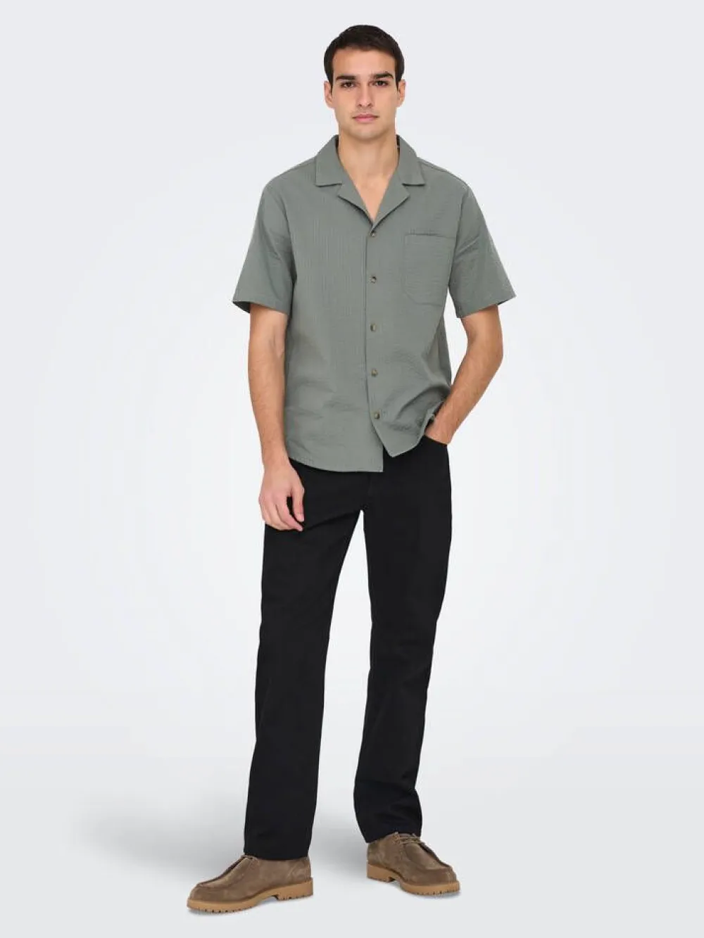 Tyylikäs ja trendikäs lyhythihainen paita nappikiinnityksellä ja rintataskulla. Paita on valmistettu seersucker puuvi…