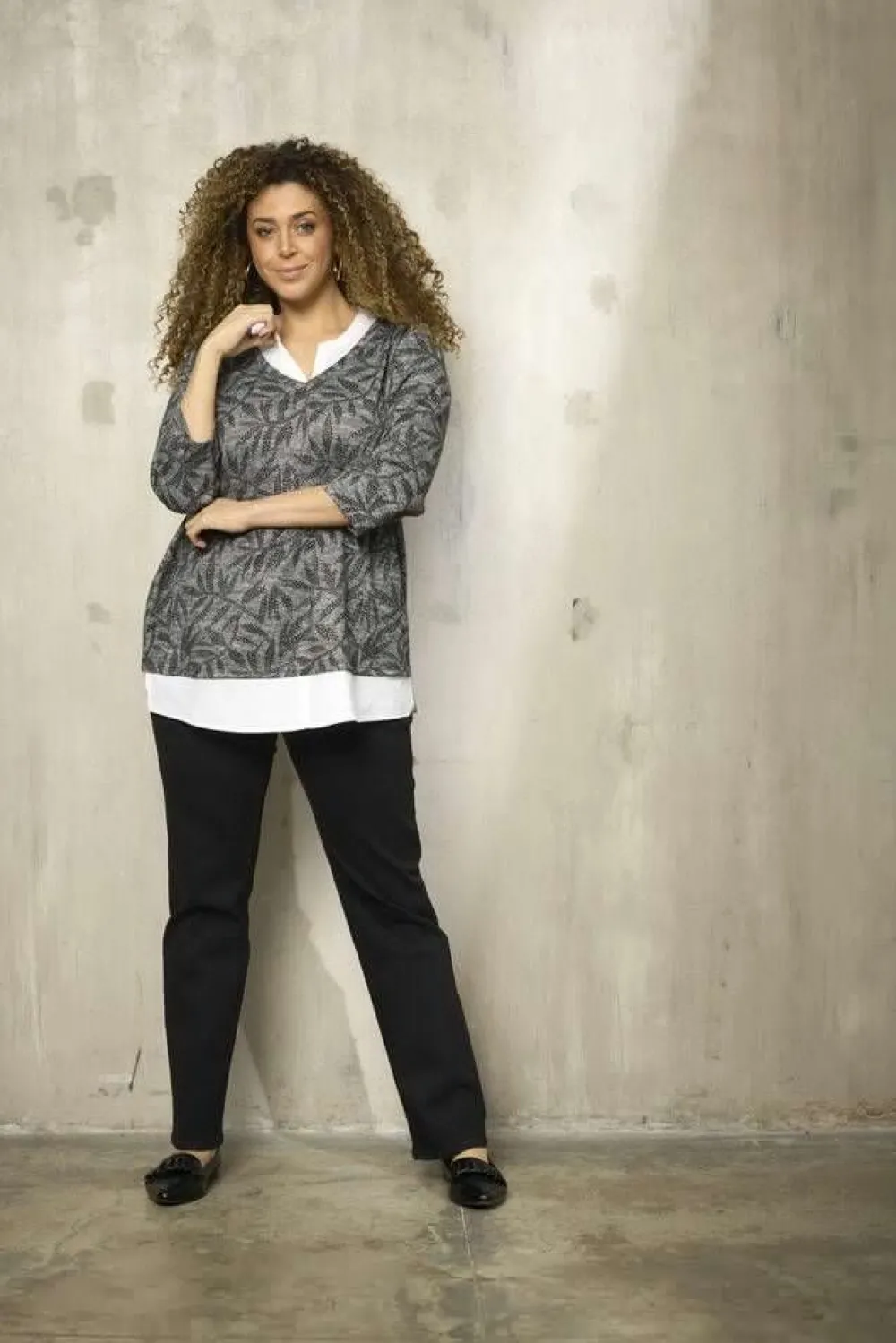 Tyylikäs naisten paita. Joustava kuvioitu päällikerros (95% polyesteriä, 5% elastaania), jonka alla on puuvillainen …