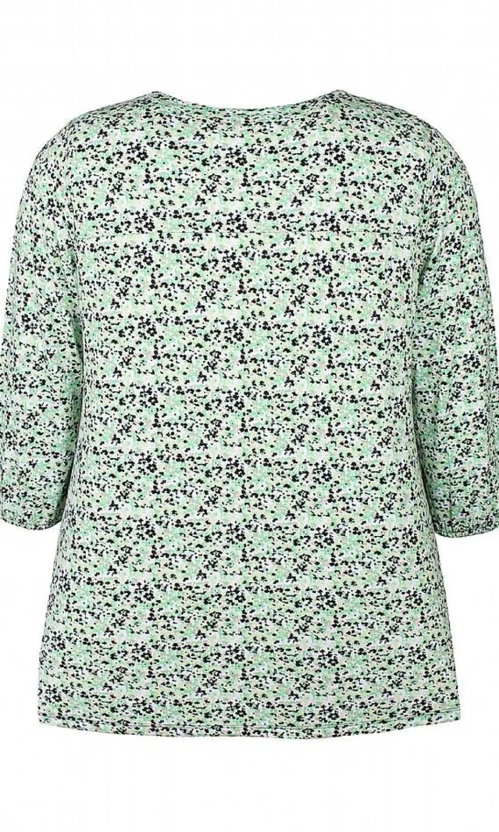 Naisten joustava printtipaita pääntien halkiolla ja vajaamittaisilla hihoilla.Lisää tietojaPlus-mitoitusHoito-ohje:V…