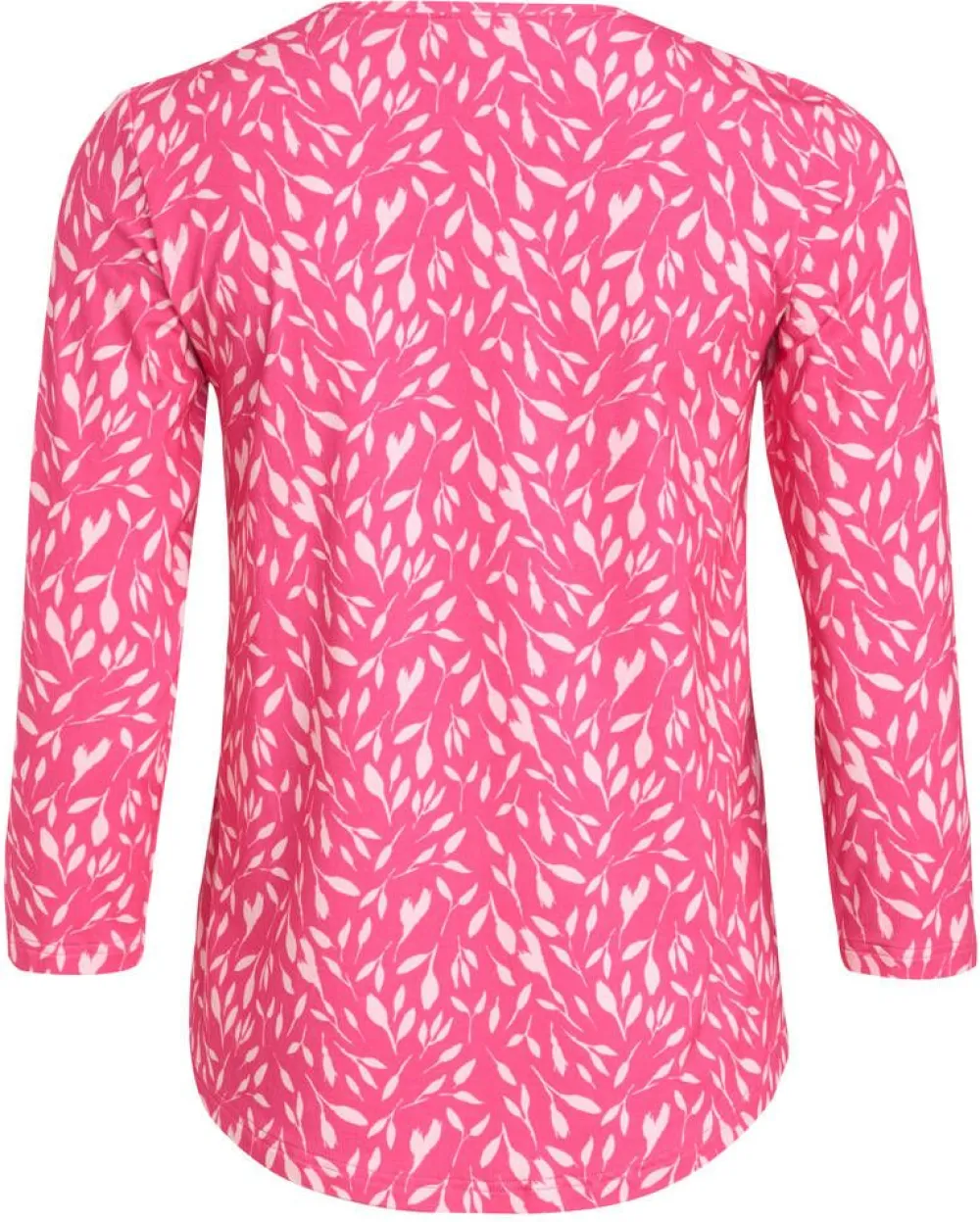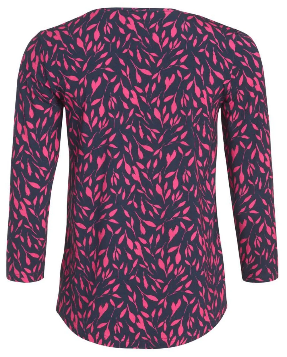Lehtikuosinen trikoopaita 3/4 hihoilla ja pyöristetyllä helmalla.Lisää tietojaOEKO-TEX® Standard 100Rinnanympärys …