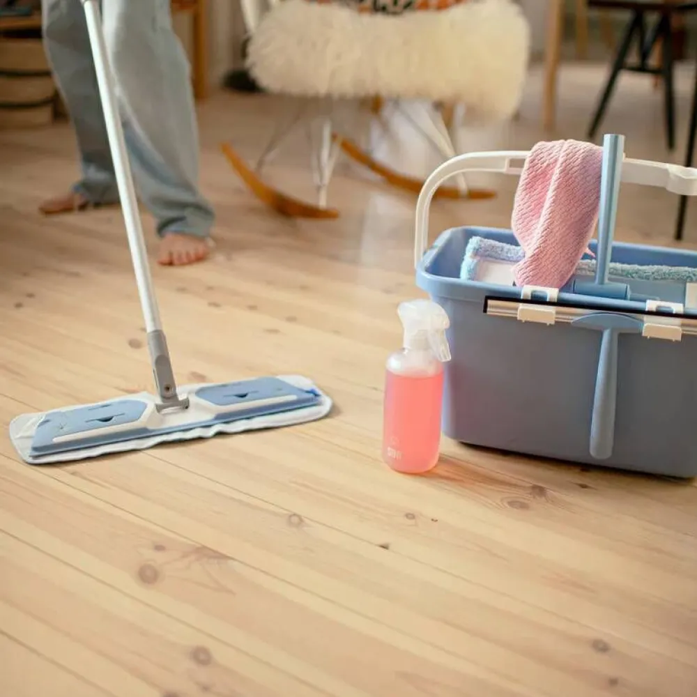 | Parkettimopin valmistuksessa on käytetty kierrätettyjä PET-pulloja (noin 80 % materiaalista) |