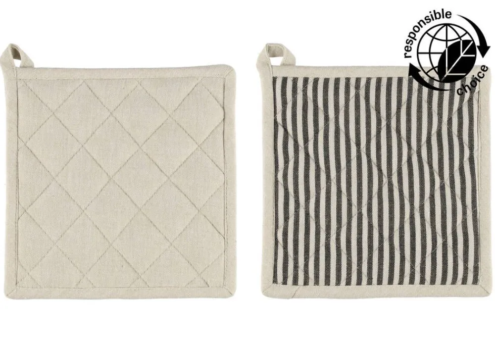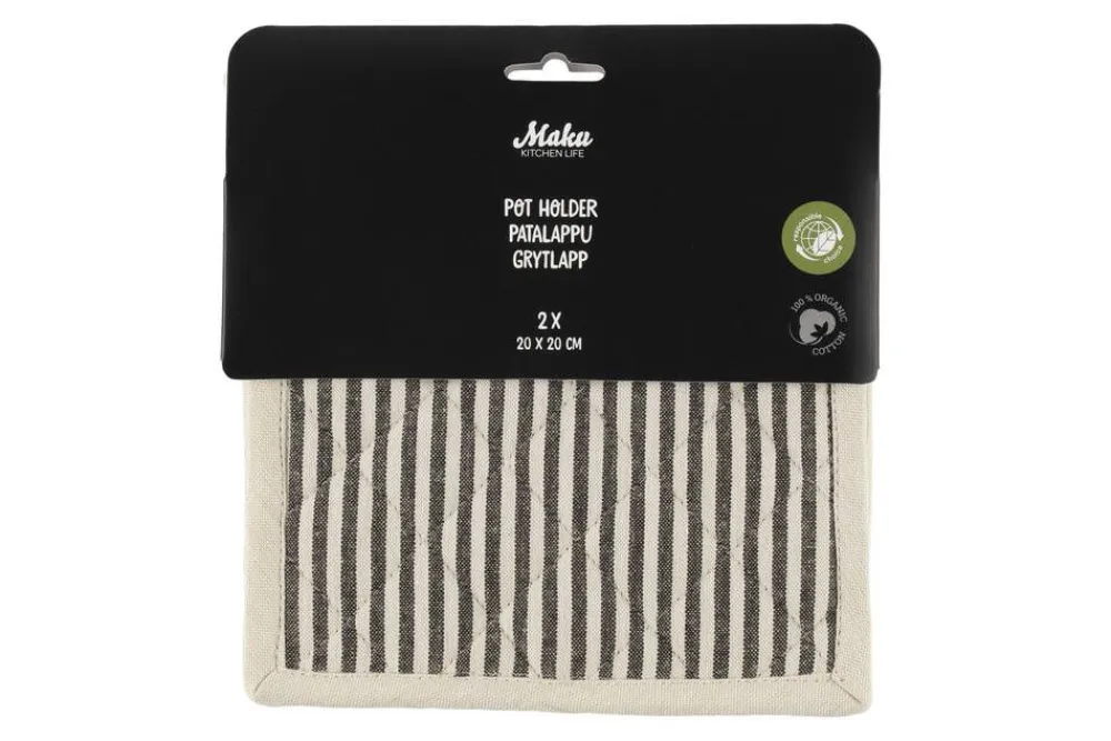 Luomupuuvillaa. Setissä kaksi erilaista patalappua. Toinen yksivärinen hiekka ja toinen raidallinen.Lisää tietojaMat…