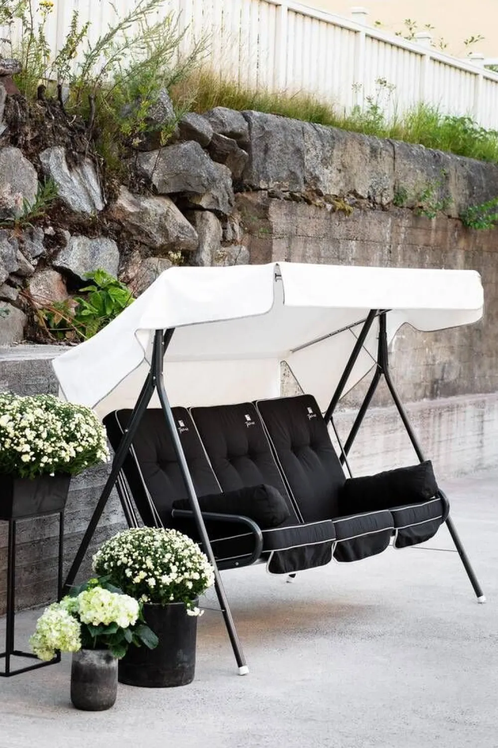 Musta suoralinjainen pehmustesarja Varaxin kolmen istuttavaan De Luxe/Monica/Suvi keinuun. Korkea selkänoja ja 3 erilli…