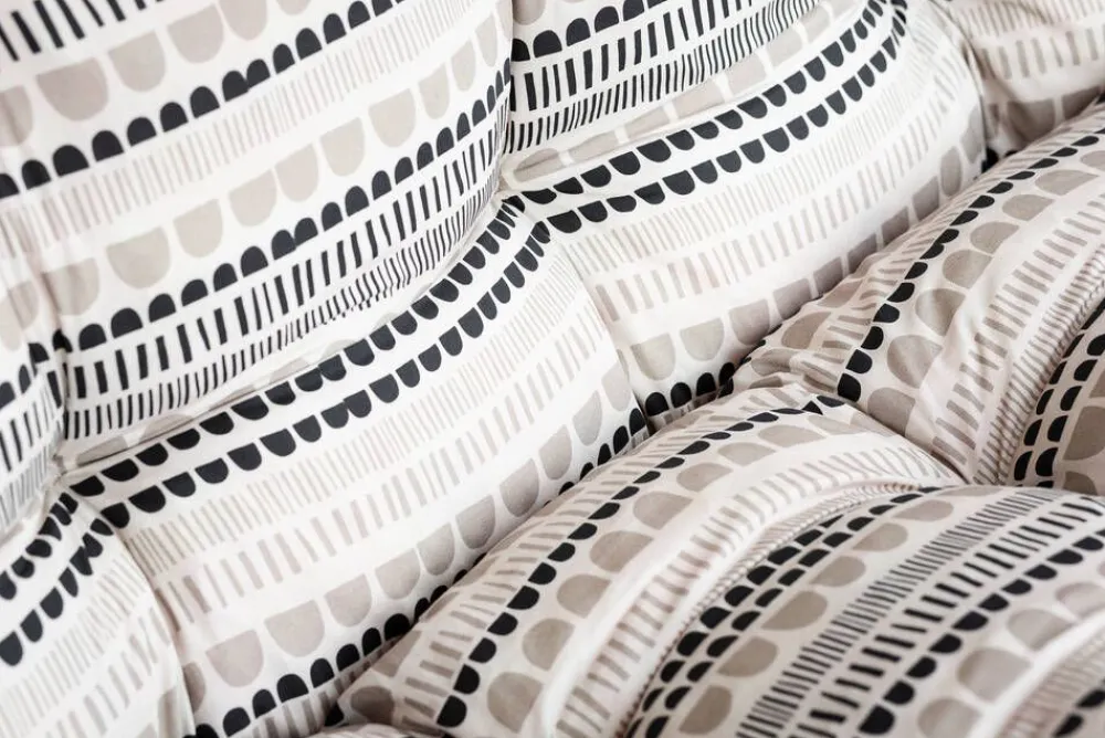Harmaa-beige Maisema pehmustesarja Varaxin kolmen istuttavaan De Luxe/Monica/Suvi keinuun korkealla selkänojalla. Istui…