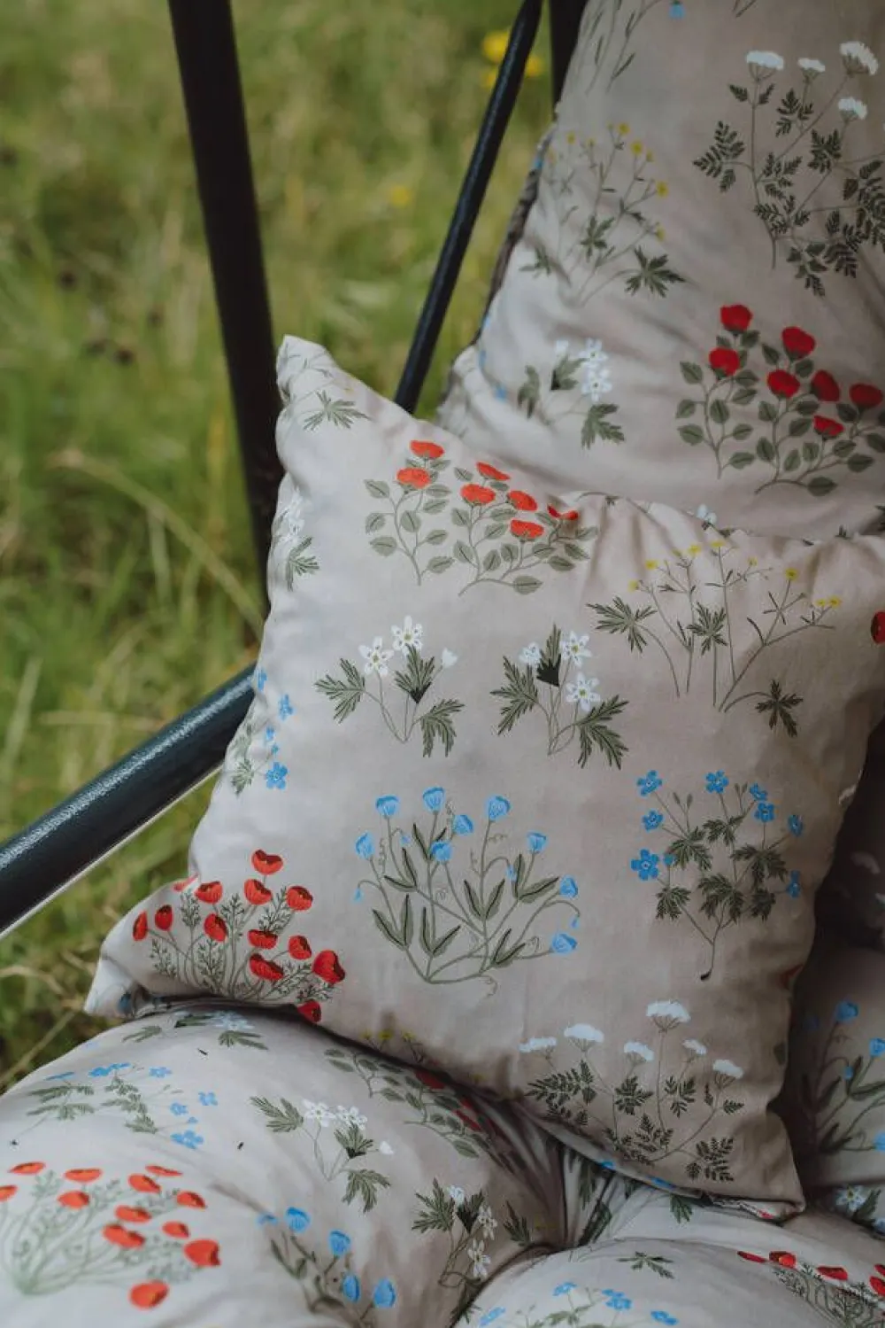 Kukkainen-beige pohja Meadow pehmustesarja Varaxin kolmen istuttavaan De Luxe/Monica/Suvi keinuun korkealla selkänojall…
