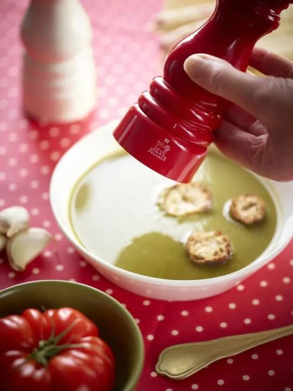 | Käyttöohje: Täytä pippurimylly ruuvaamalla nuppi auki ja poistamalla korkki. Täytön jälkeen laita korkki takaisin paikalleen ja ruuvaa nuppi kiinni. Kierrä jauhaessa myllyn yläosaa vain myötäpäivään. Edestakaisin kiertäminen ei rouhi mausteita. Käytä vain kovia, kuivia pippurilaatuja (musta- tai valkopippuri). Älä jauha pippurimyllyllä suolaa, rosé- tai viherpippureita, pehmeitä pippureita sisältäviä pippurisekoituksia, maustepippuria, chiliä tai muita mausteita. |