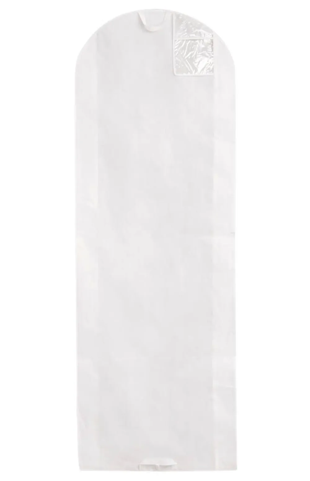 Valkoinen pukupussi mustalla logolla tai ilman varastotilanteen mukaan. Molemmissa pukupusseissa on muuten samanlainen p…