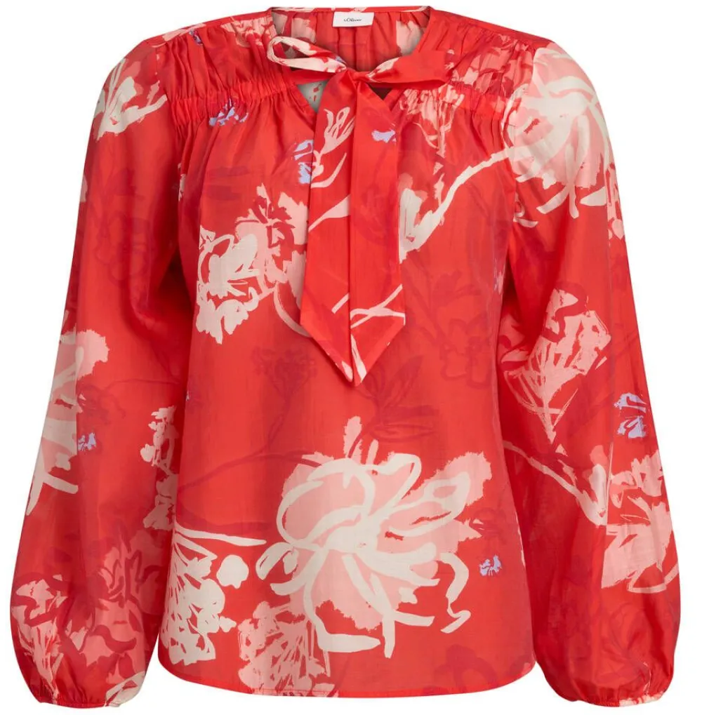 Todella kevyt printtipusero kauniilla huivikauluksella ja pitkillä hihoilla. Hihansuissa on kapeat kuminauhakiristykset…