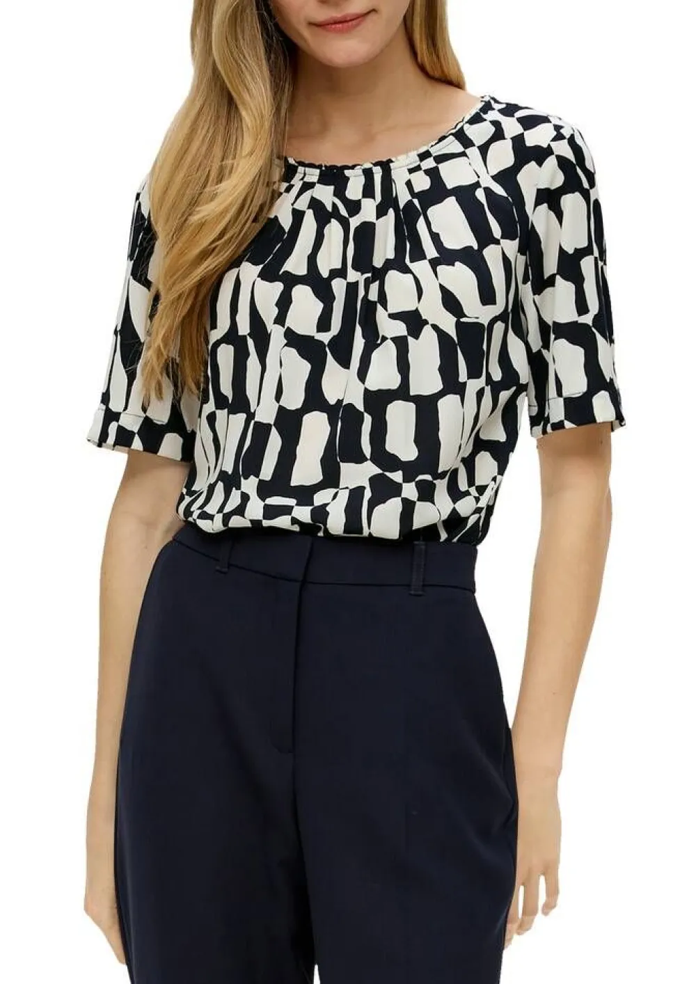 Lyhythihainen pusero ajattomalla mustavalkoisella kuosilla. Pääntiellä on tyylikkäät laskokset.Lisää tietojaHoito…