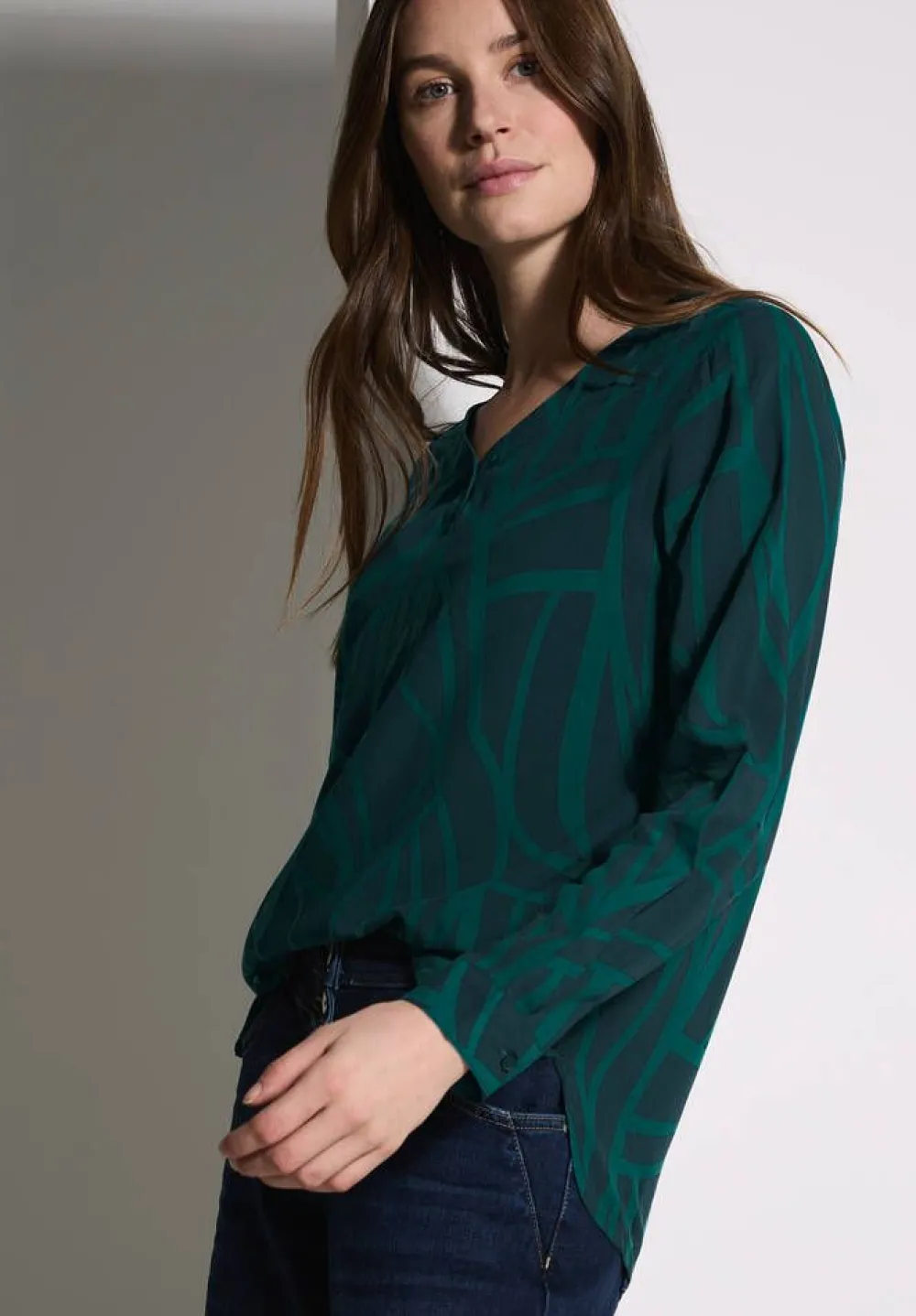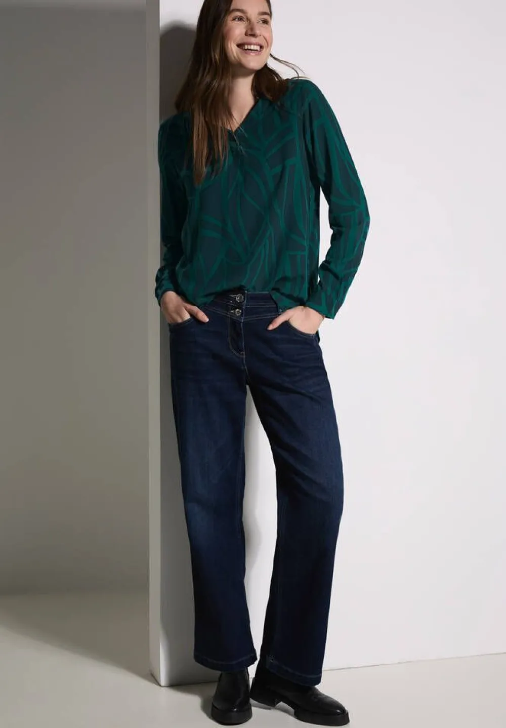 Näyttävä printtipusero klassisella v-pääntiellä, jossa on yksi nappi. Myös hihansuissa on avattavat napit. Helma …