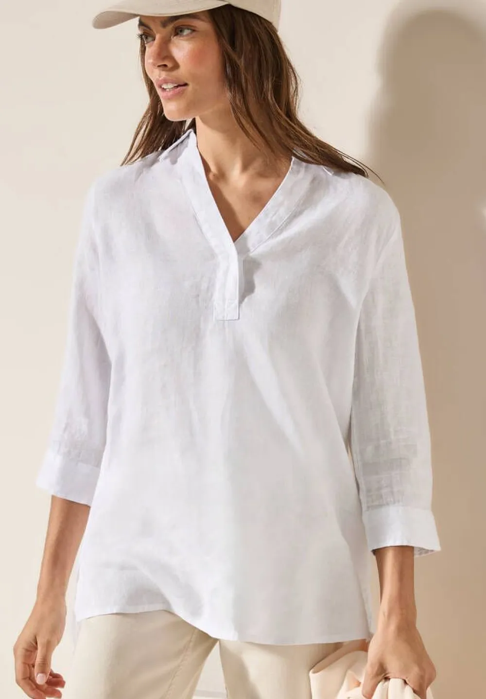 Kevyt ja väljänmallinen naisten pellavapusero 3/4-hihoilla ja sivusaumojen halkioilla. Paidassa on v-pääntie, jossa …