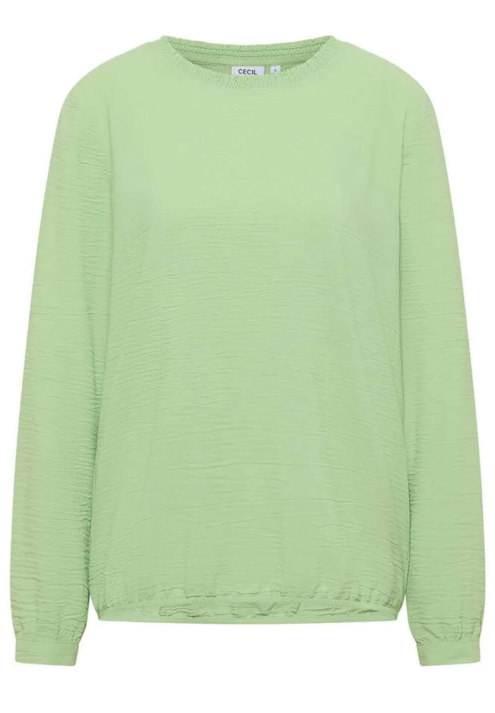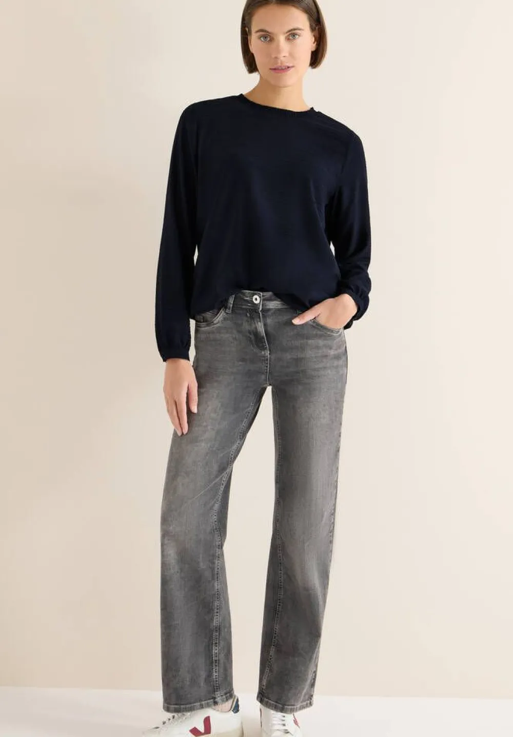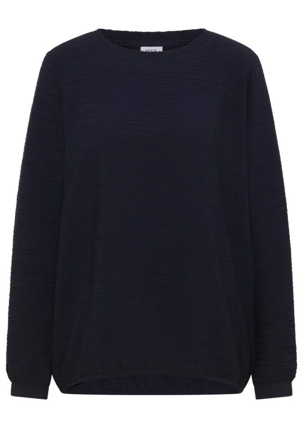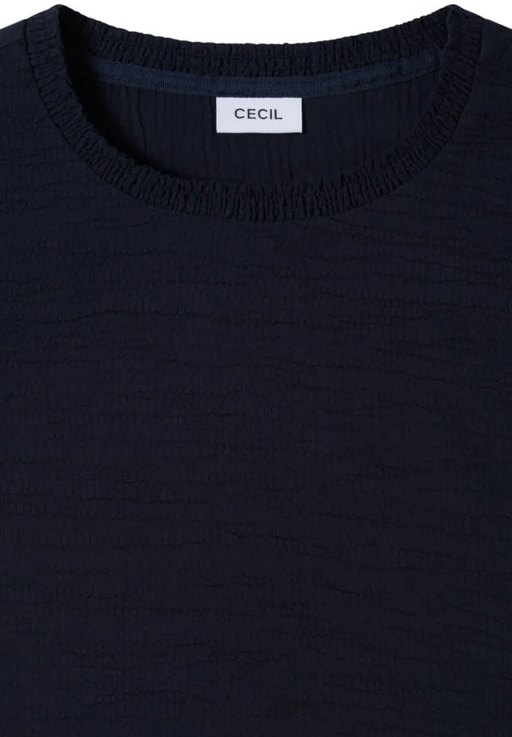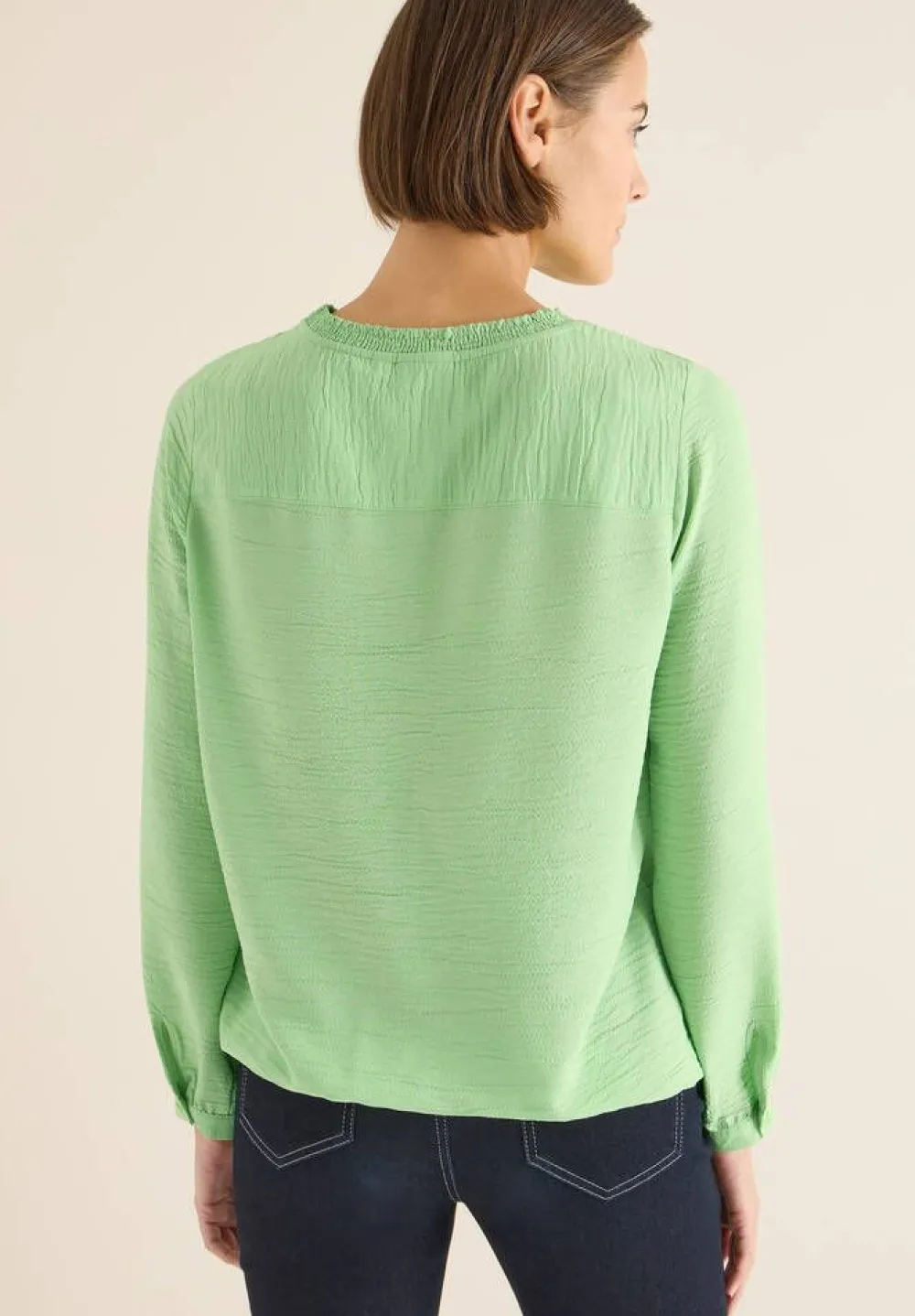 Rennon tyylikäs struktuuripintainen yksivärinen pusero, jossa on koristeellinen pyöreä pääntie pienellä frillalla…