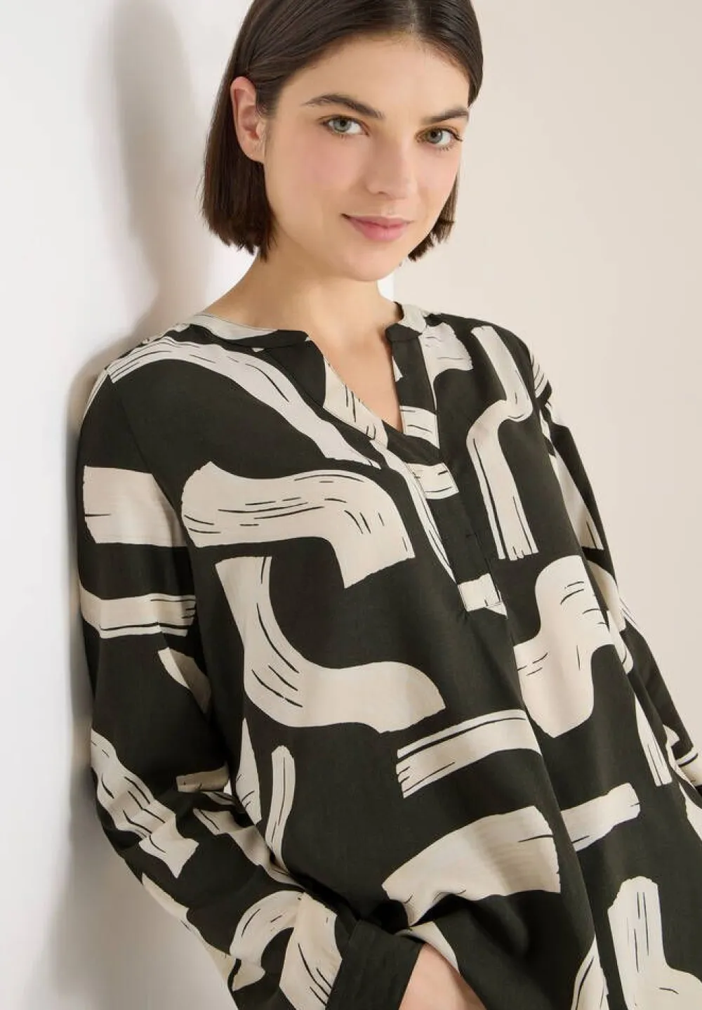 Kuviollinen pusero v-pääntiellä ja pitkillä hihoilla.Lisää tietojaMateriaali:100% viskoosi