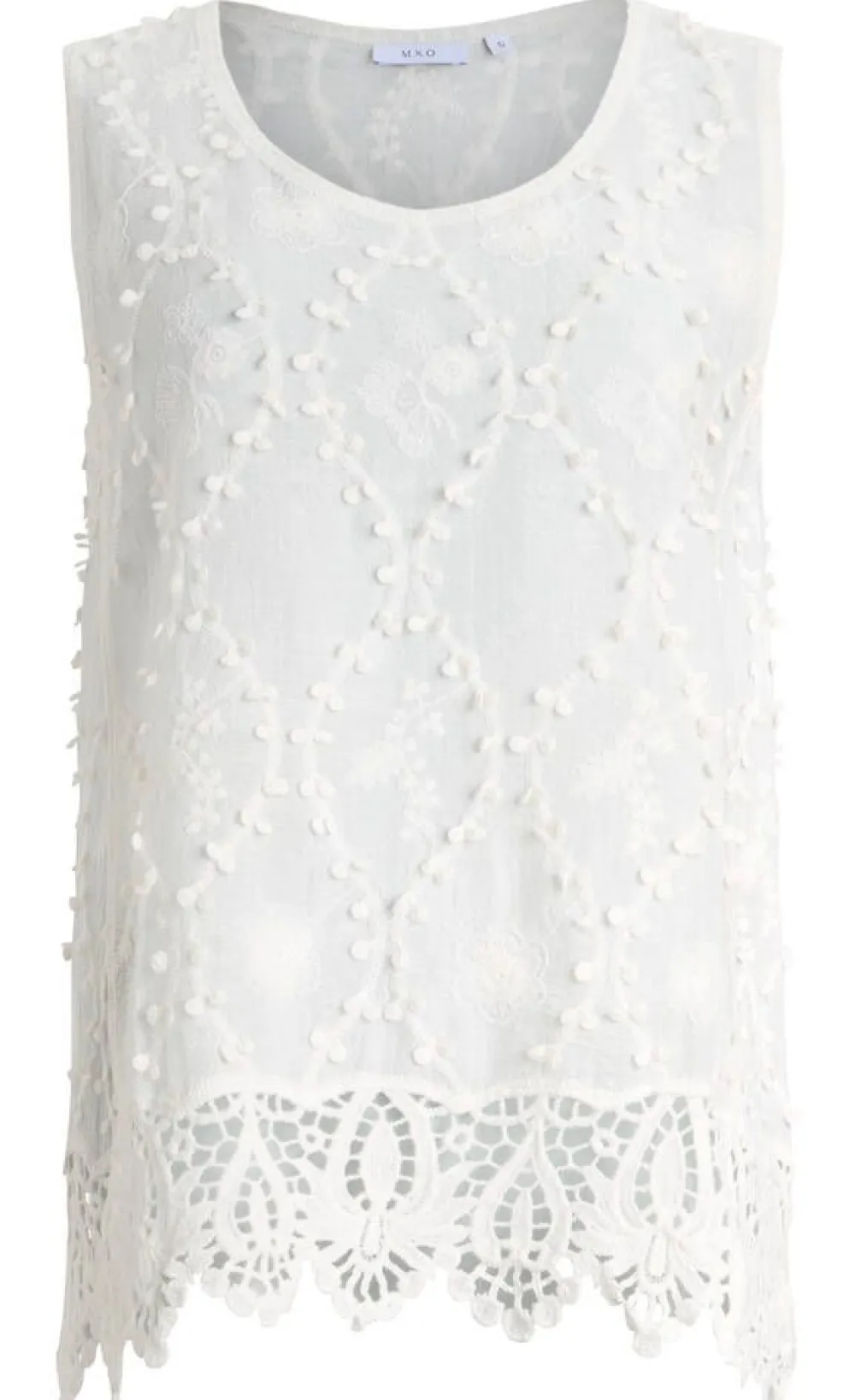 Ihana kokovalkoinen hihaton kukkakirjailtu pitsipusero kevyttä puuvillaa.Lisää tietojaRinnanympärys (koko S): 94 cmV…