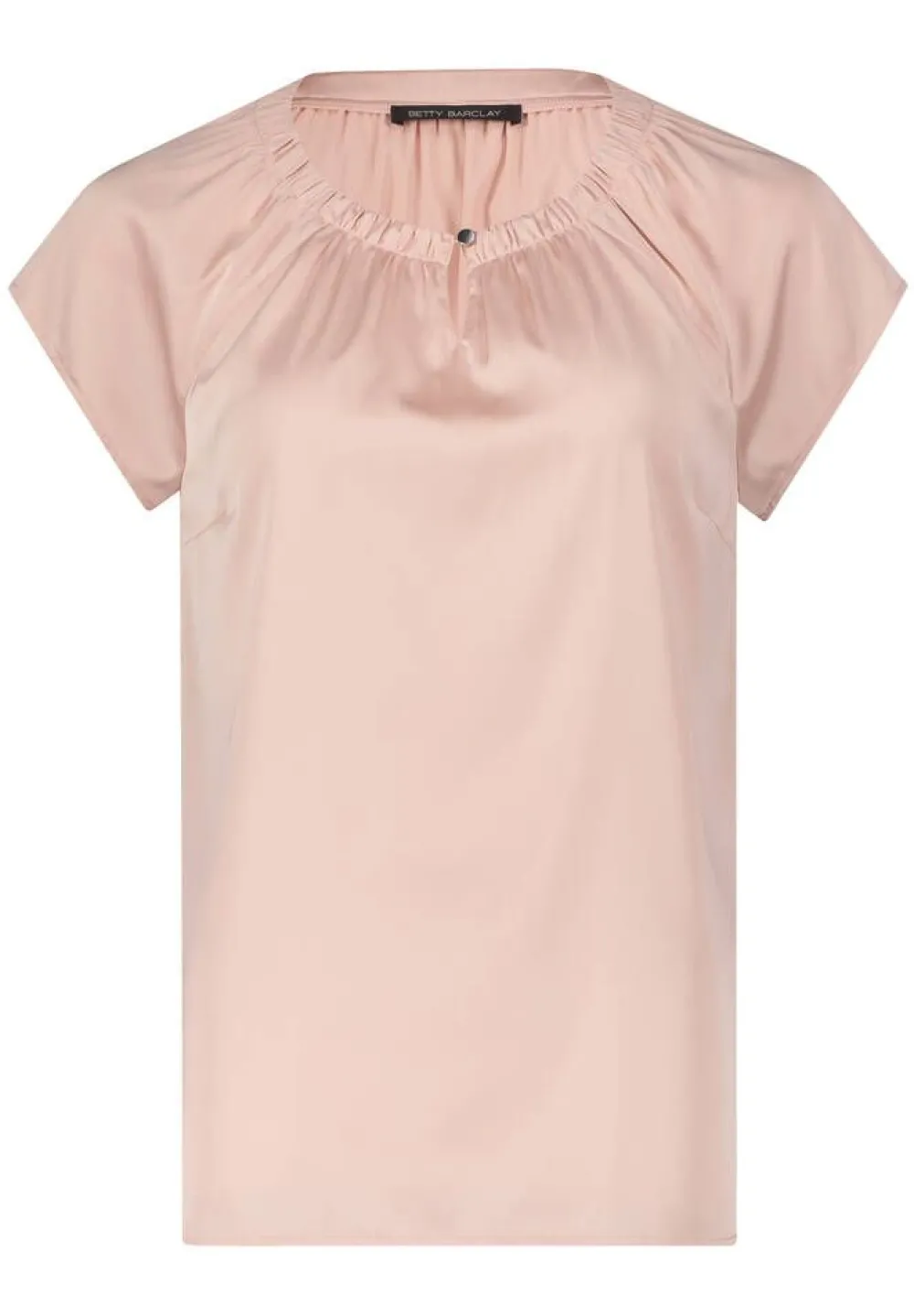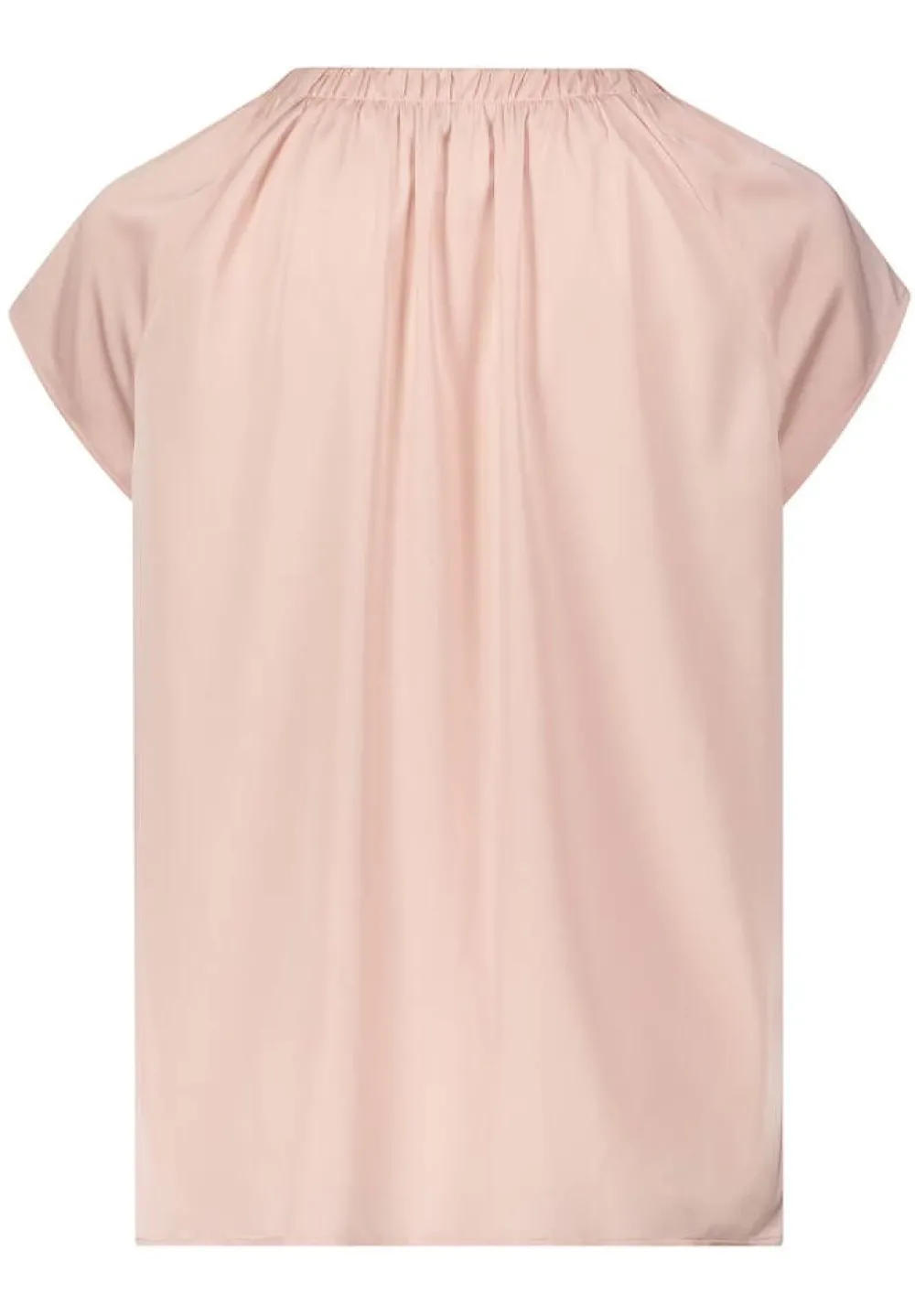 Satiininen pusero lyhyillä hihoilla. Pääntiellä on pieni nappi sekä tyylikästä poimutusta.Lisää tietojaHoito-oh…