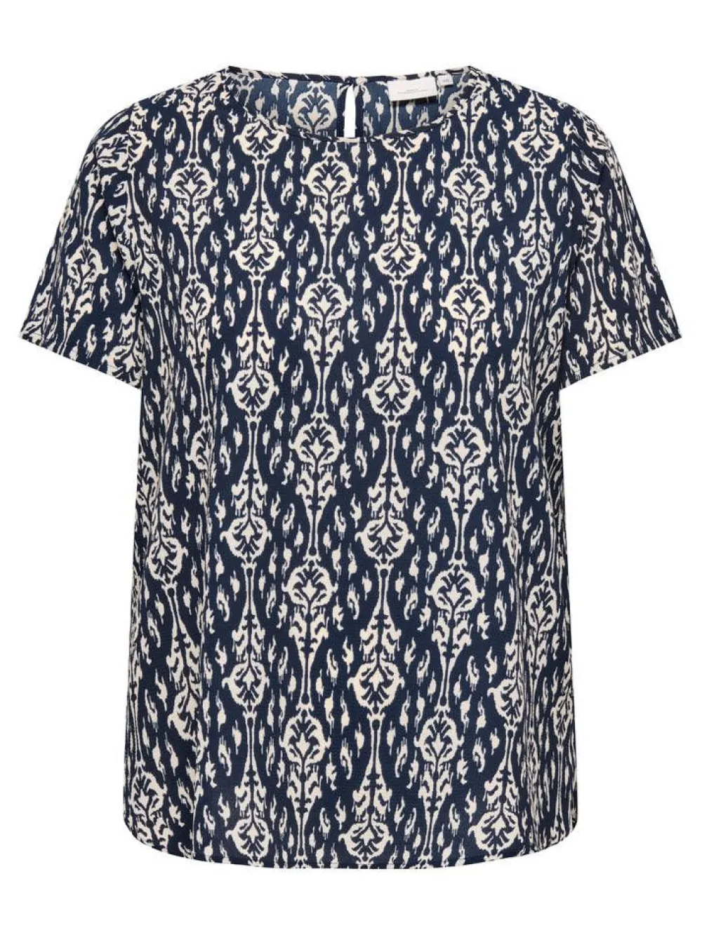 Lyhythihainen pusero kahdella erilaisella printtikuosilla. Niskassa nappikiinnitys.Lisää tietojaPlus-mitoitusMateriaal…