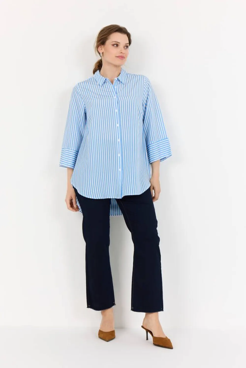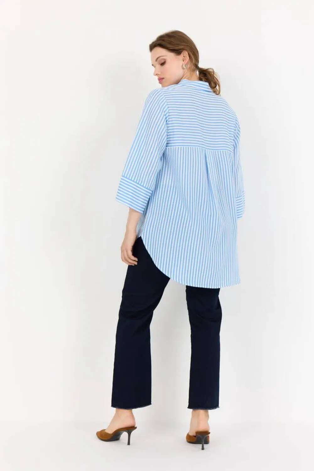 Tyylikäs pystyraidallinen kauluksellinen pusero, jossa edessä napitus ja 3/4-pituiset hihat.Lisää tietojaHoito-ohje:…