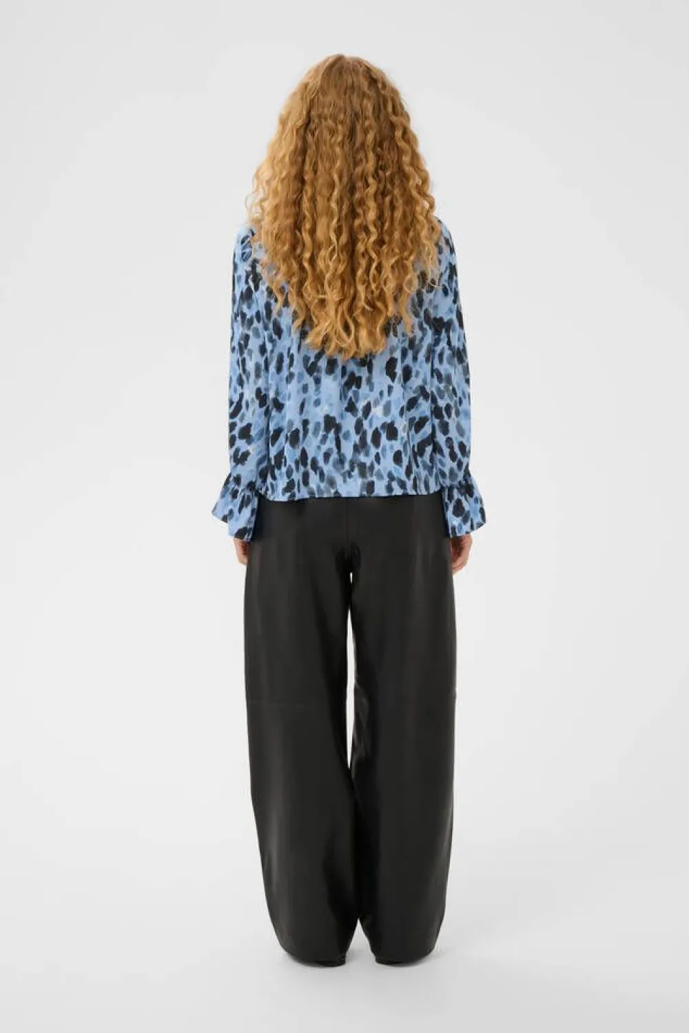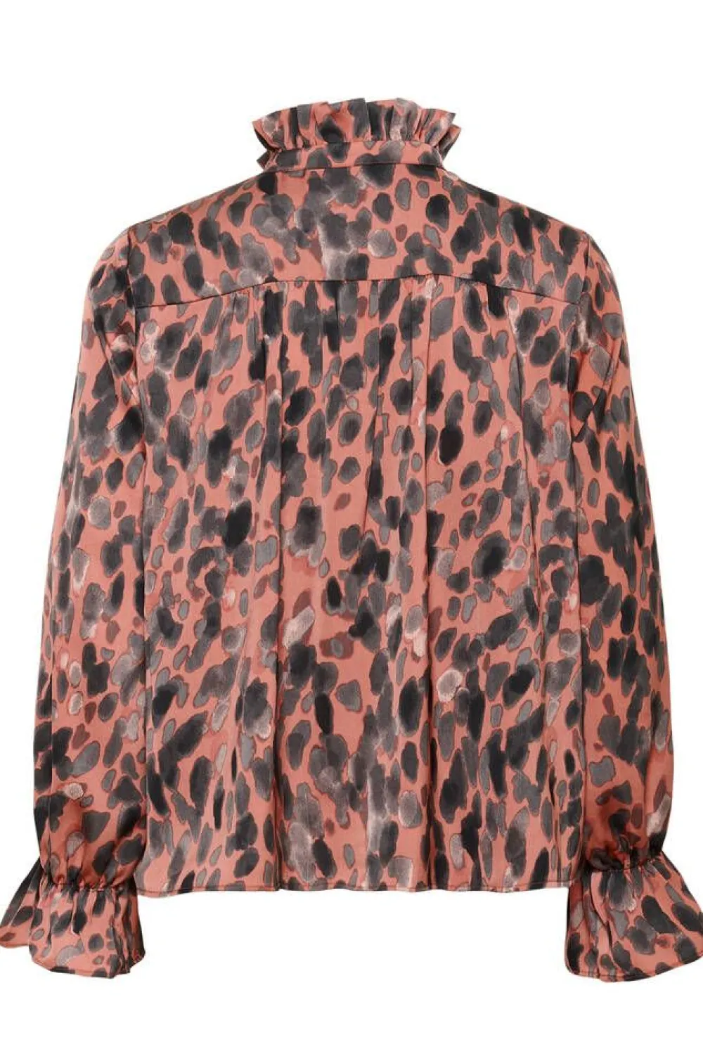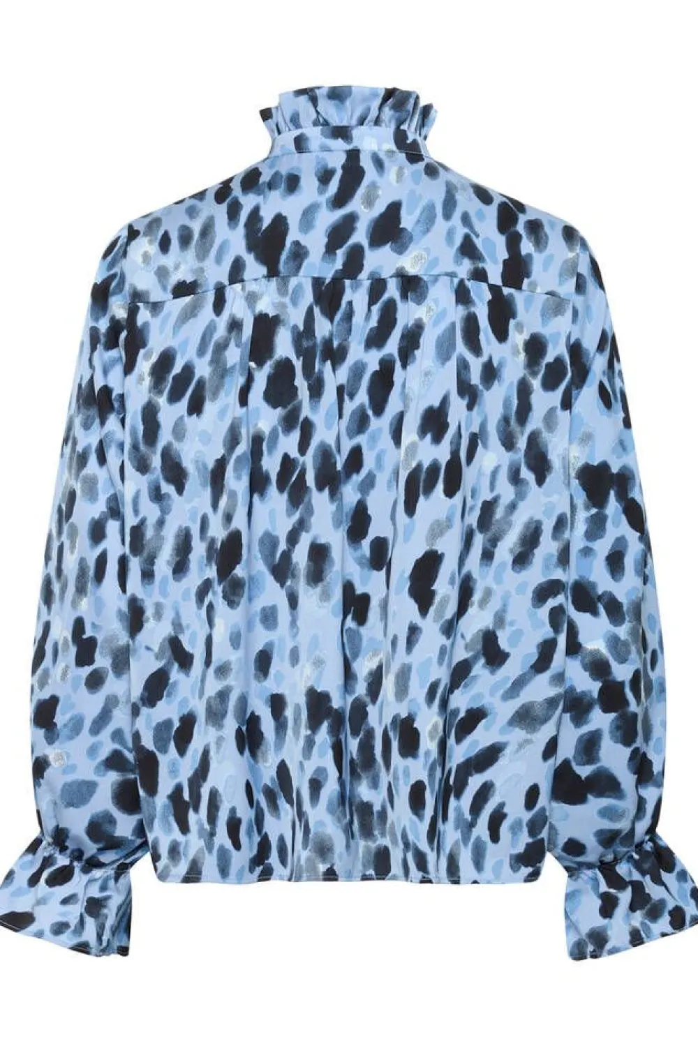 Huipputrendikäs täpläkuosinen pusero frillallisella huivikauluksella ja pitkillä hihoilla, joissa on ranteiden kohda…